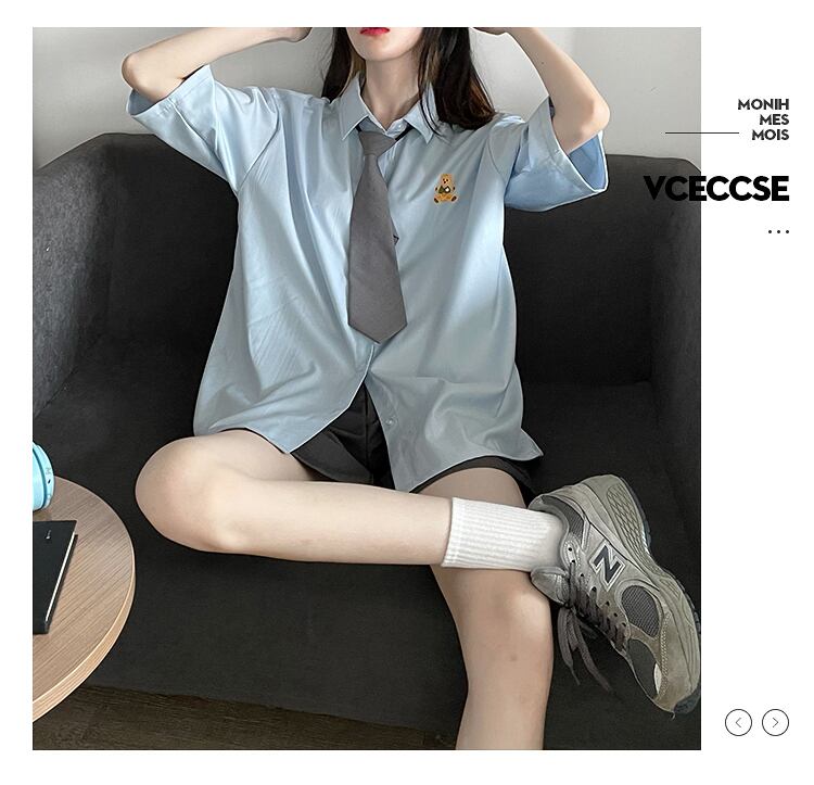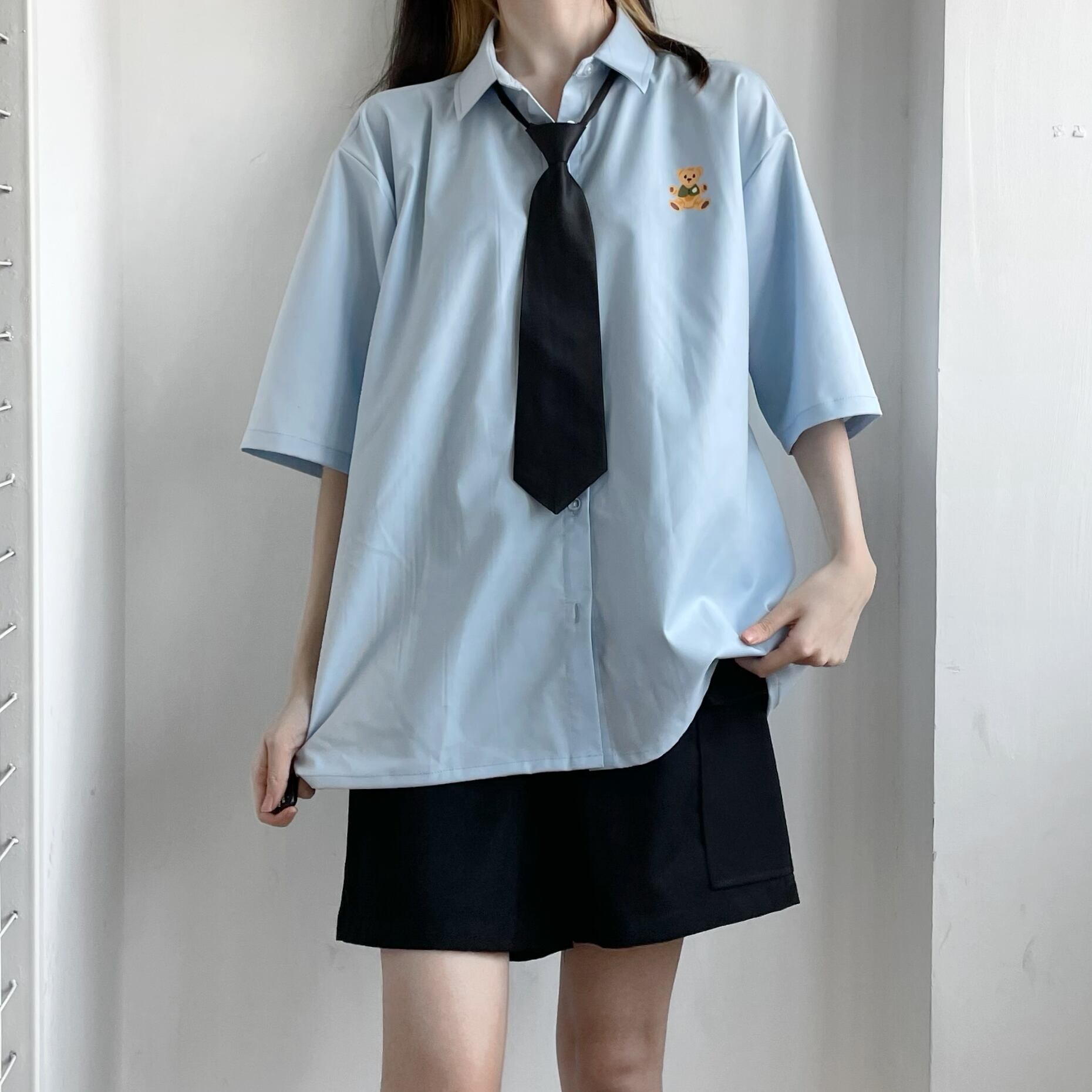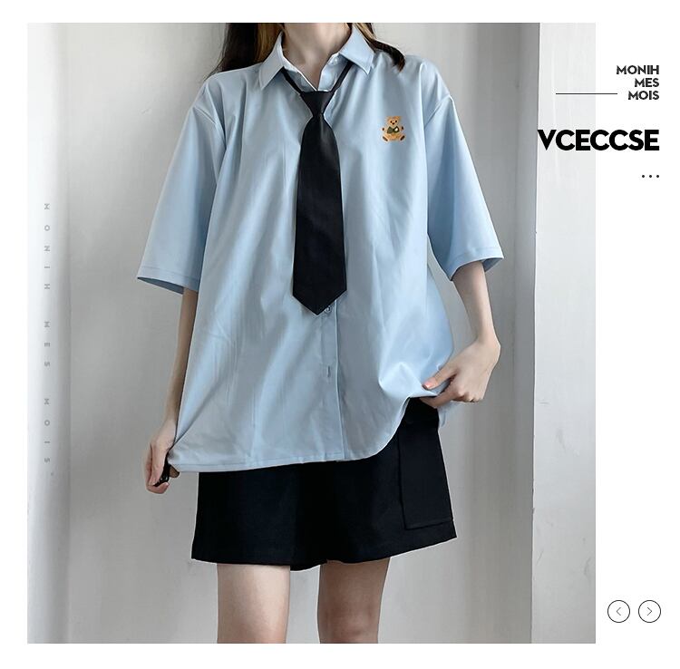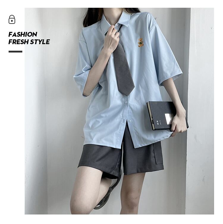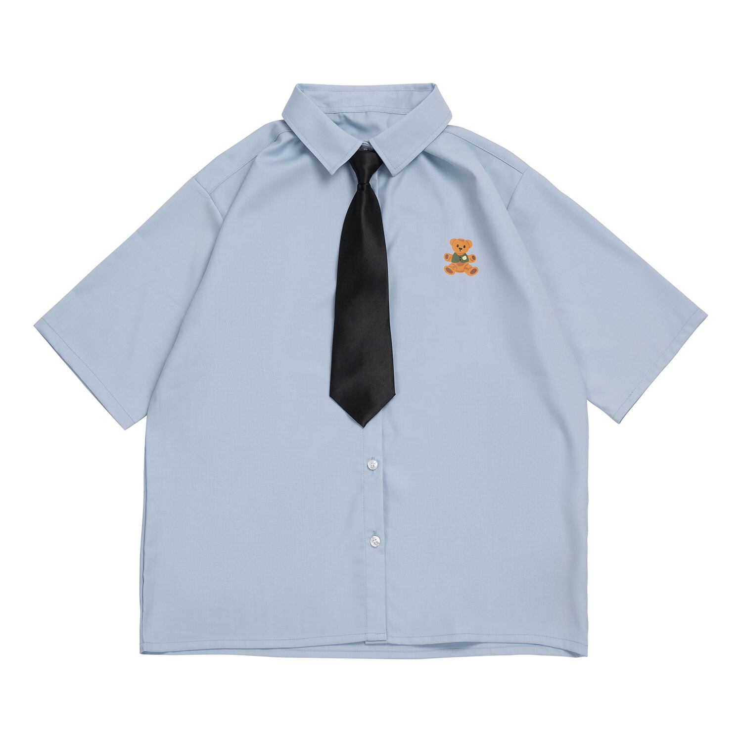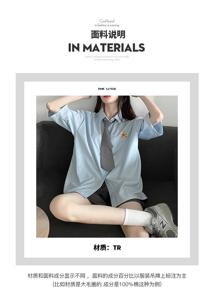 pinksavior【リトルベアスチューデント】babyblue夏フレッシュライトブループリント半袖シャツ ピンク サマー 夏物 PSTB78970287977
