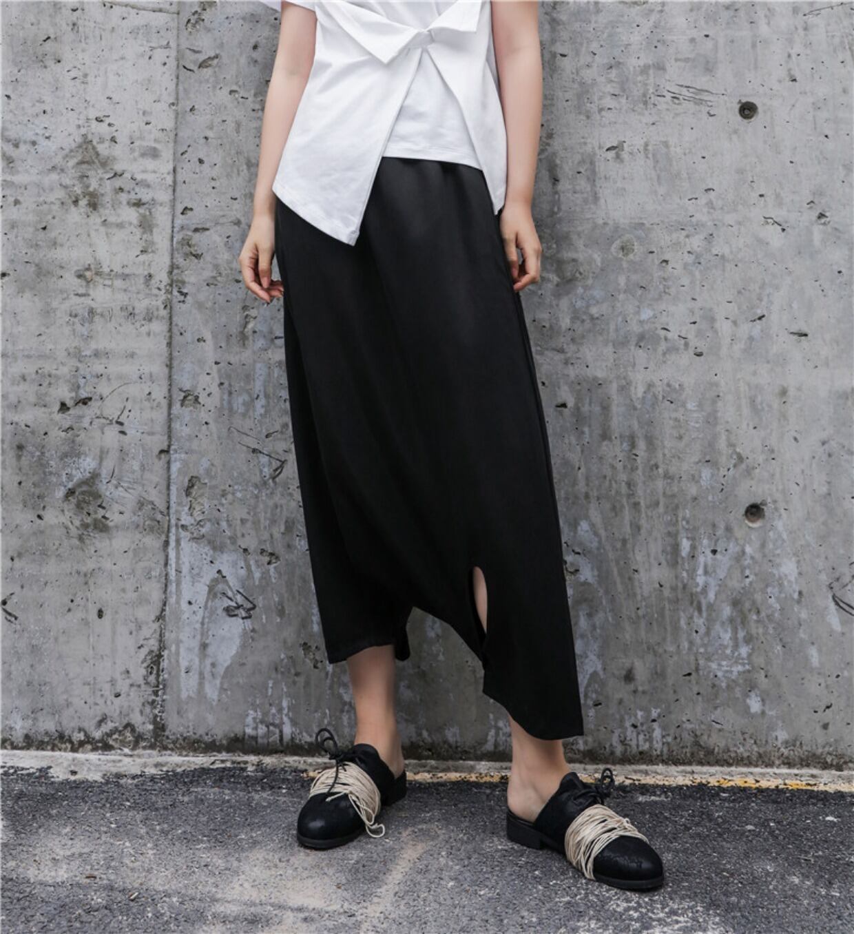 BLACK ANDWHITEオリジナルダークブラックレディースアシンメトリー袴2018夏新作ブルマ9点パンツ ホワイト サマー 夏物 ショーツ ブルマー BWTB57683314402