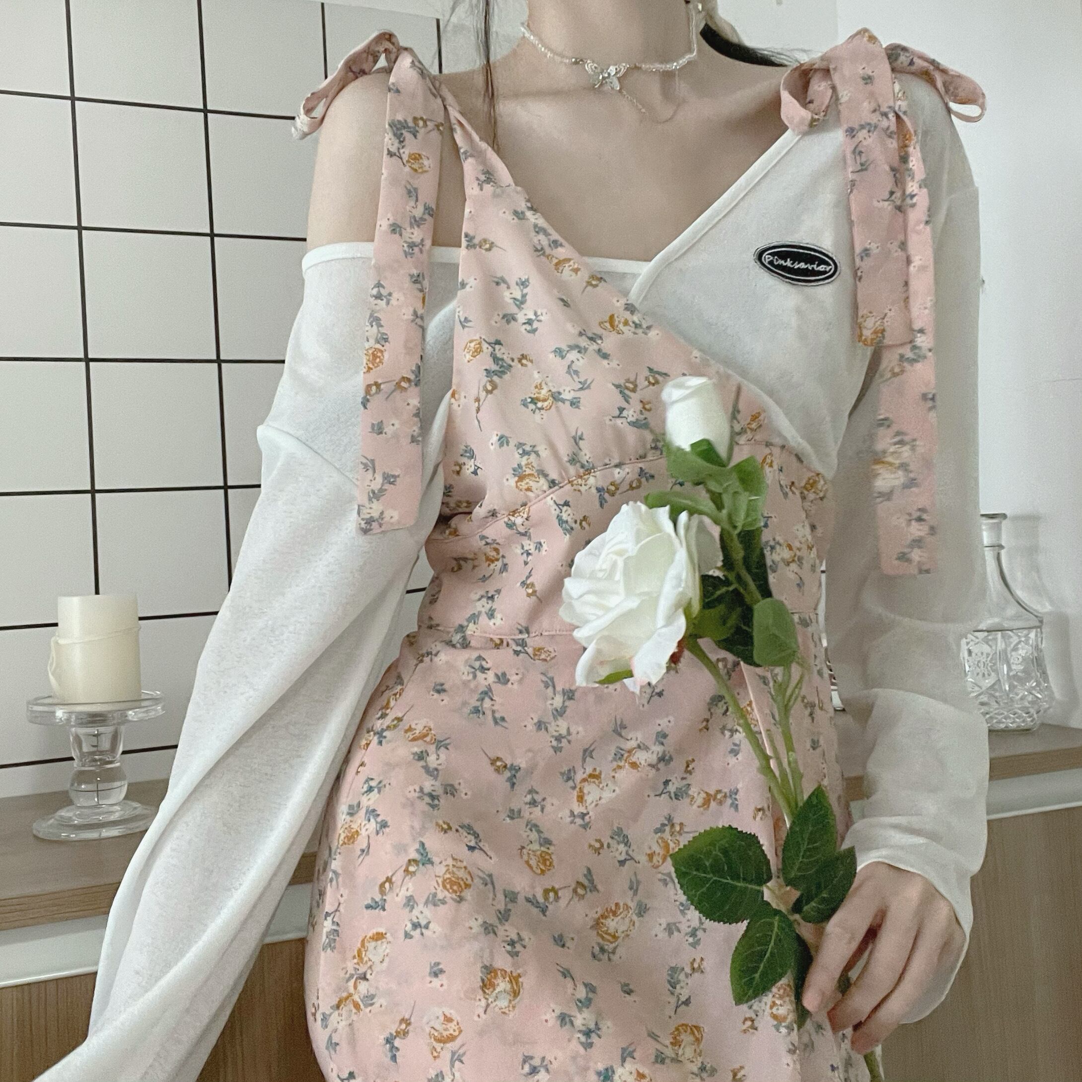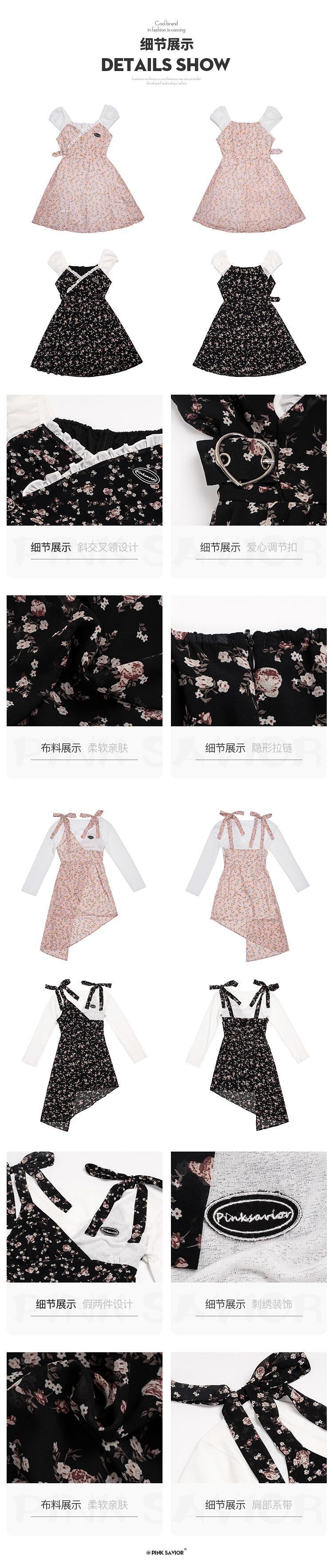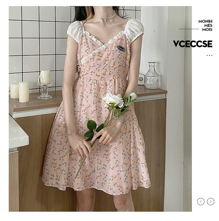 pinksaviorフローラル豊かなステッチデザインセンス夏2021新しい花柄ドレス女性の夏 サマー 夏物 PSTB47889020302