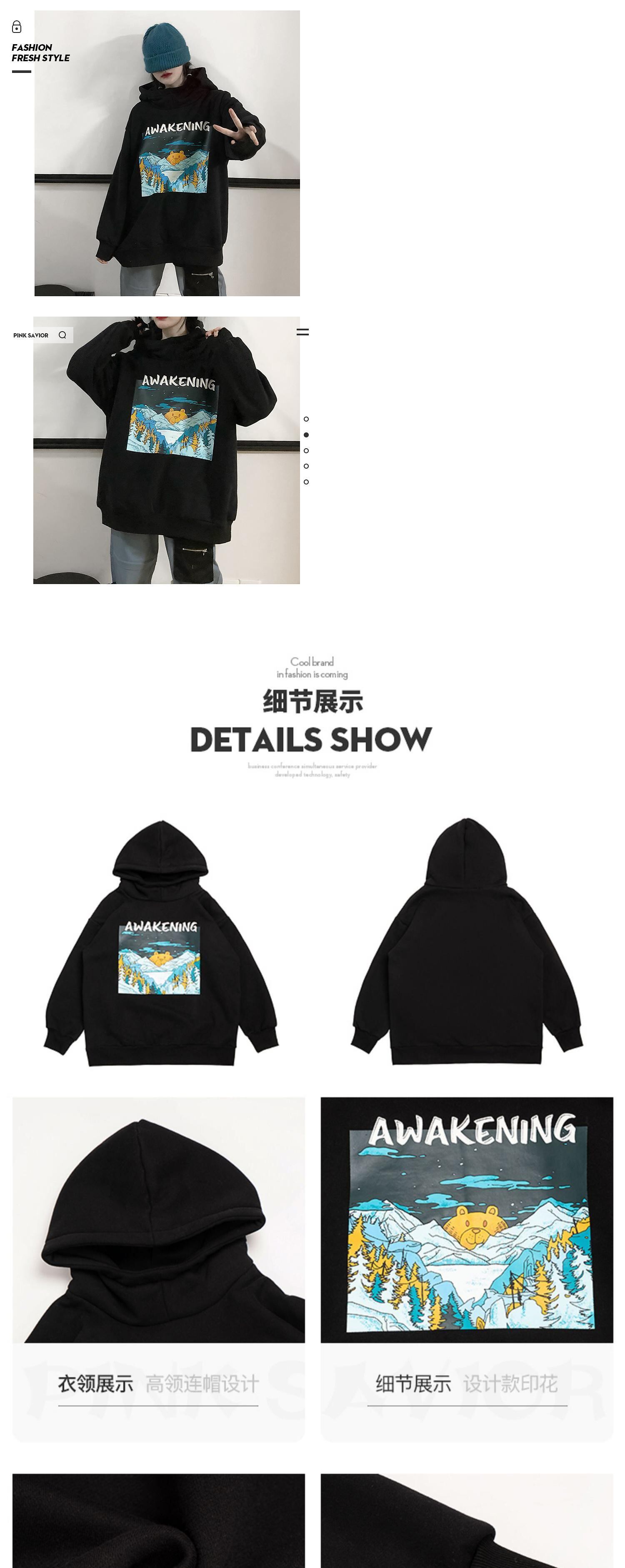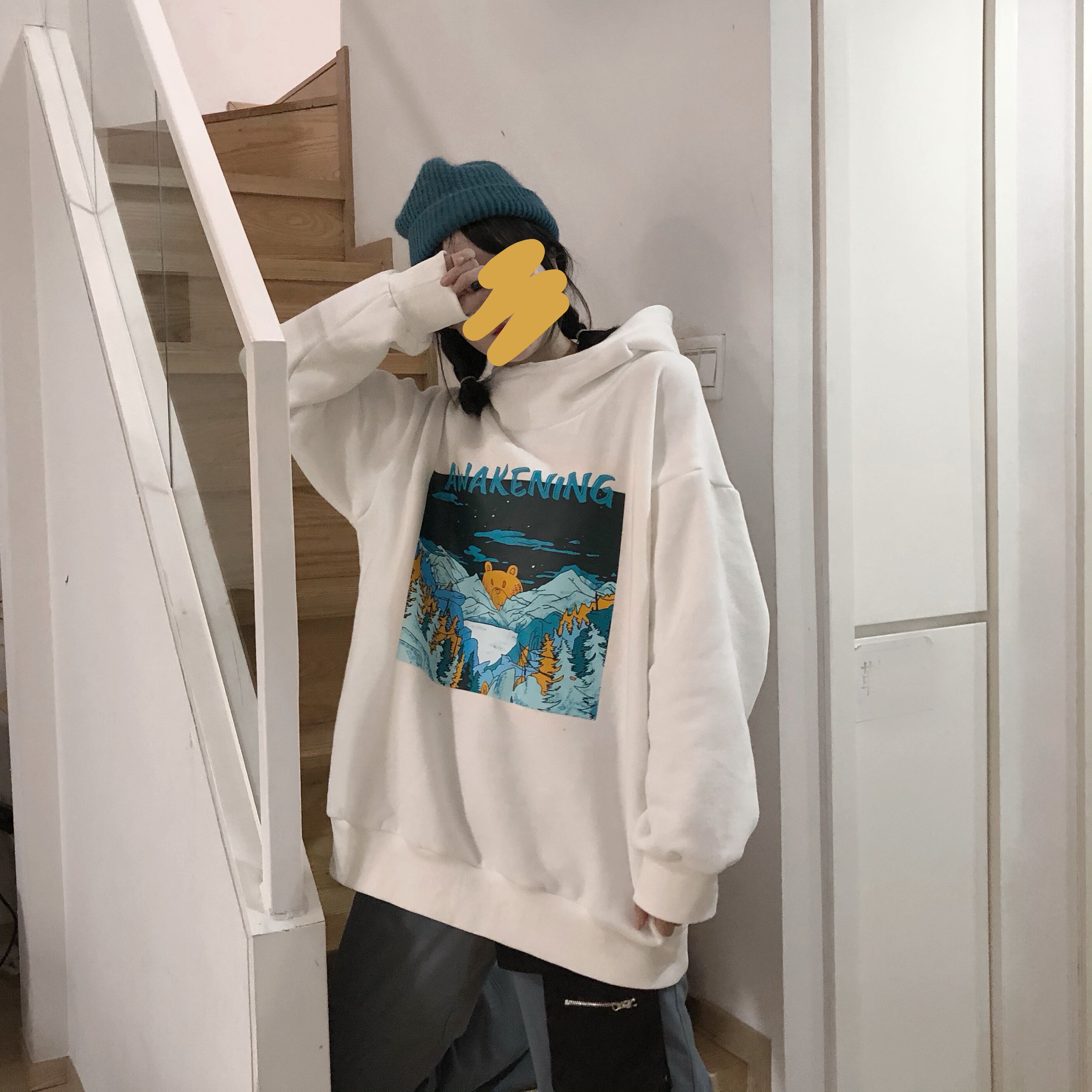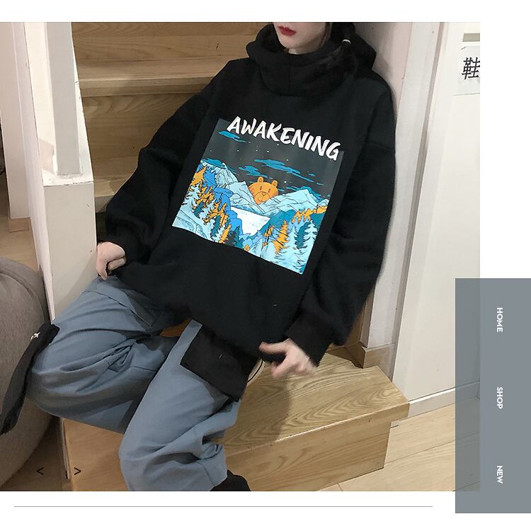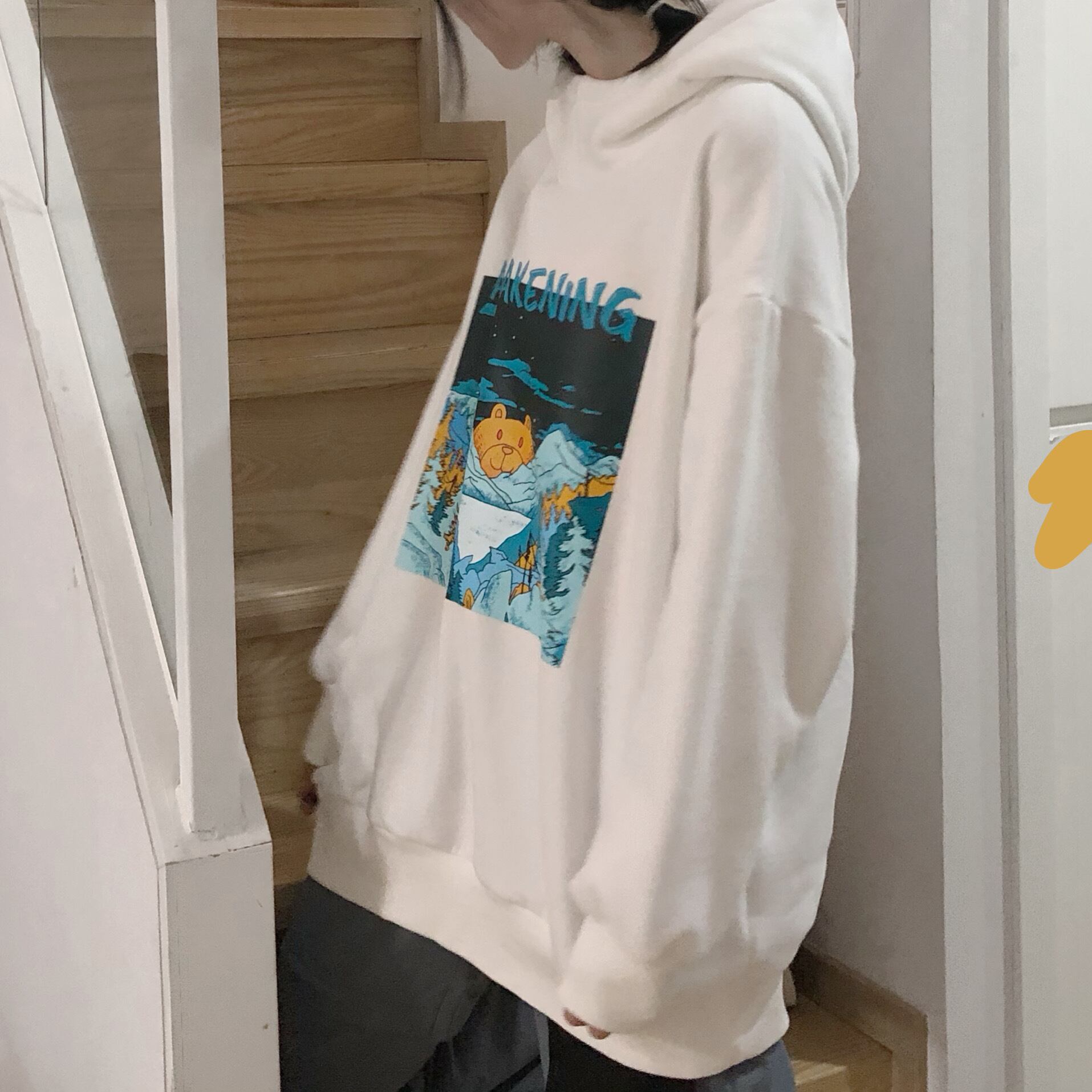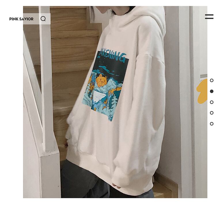 pinksavior【クマについて】暖かいカップルのコットンベルベットの黒と白のフード付きルーズセーターの女性の在庫があります ピンク ホワイト ブラック PSTB64402815389