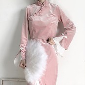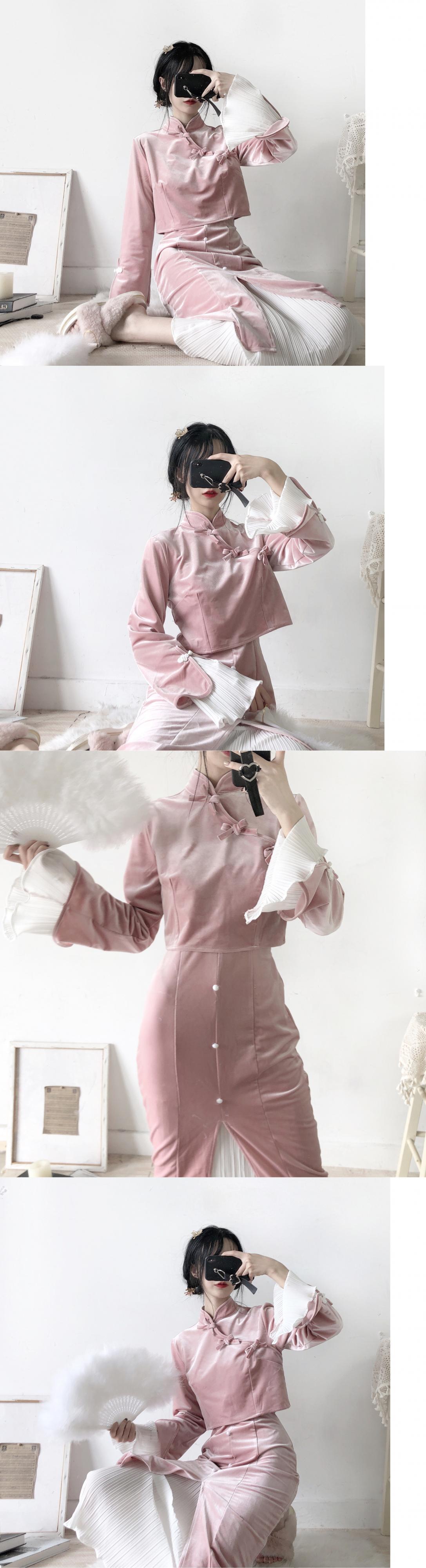 pinksavior共和党スタイルの改良された武将の女性グレーブルーグレーパウダーチャイナドレス厚い毛皮のスーツ PSTB71214475826