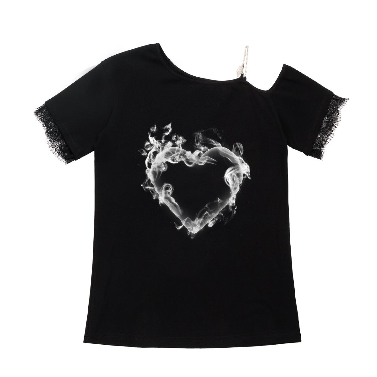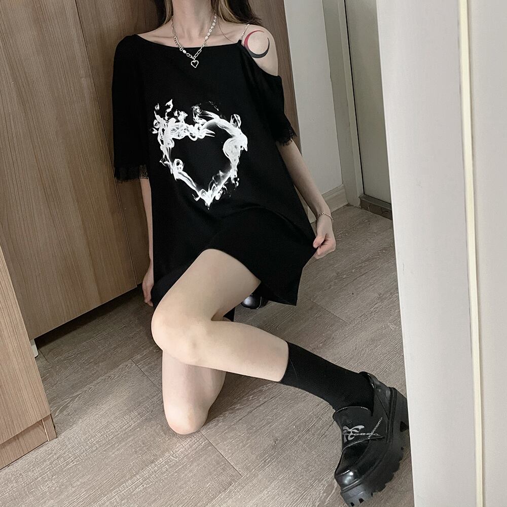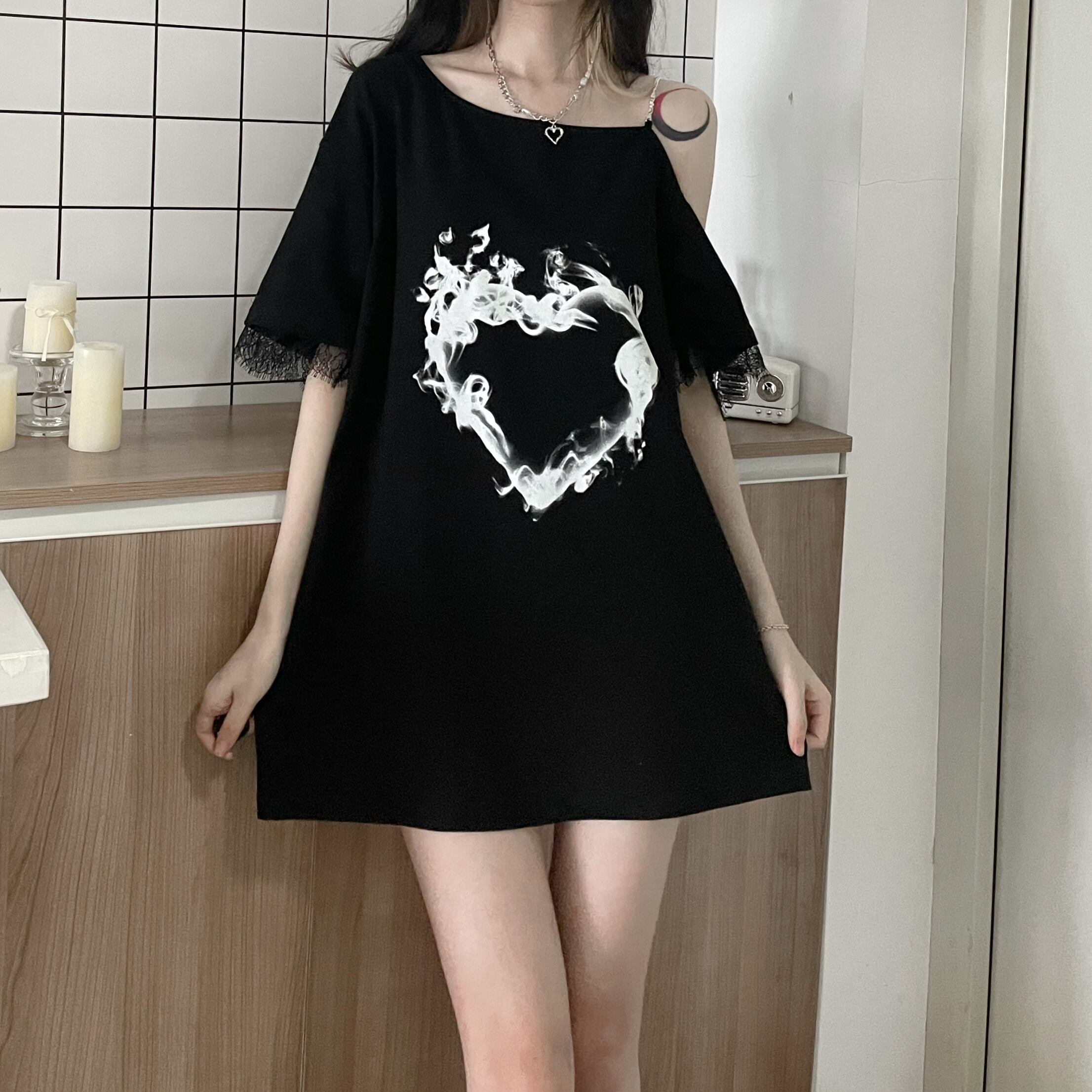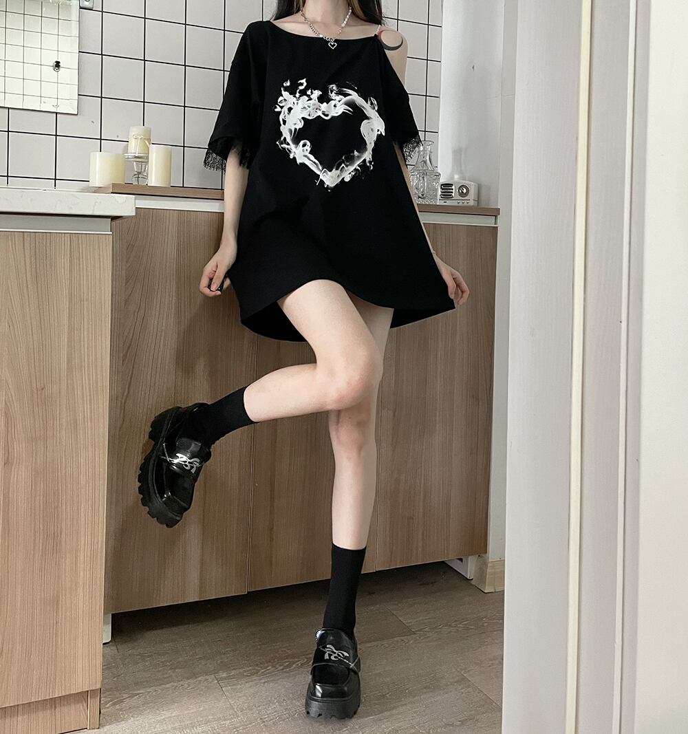 pinksavior[炎の心]ストラップレスの不規則なレースの装飾チェーンショルダーストラップ一言薄い黒のドレス ブラック PSTB39578708204