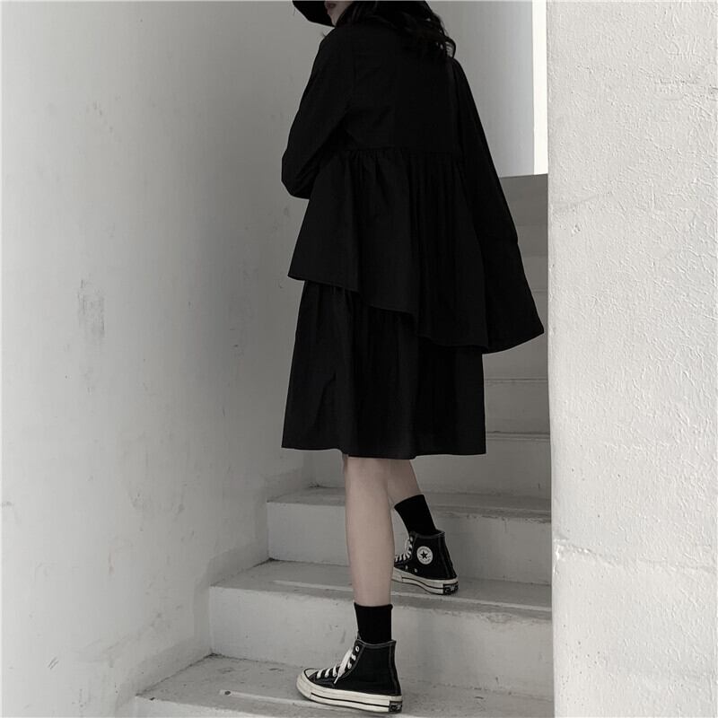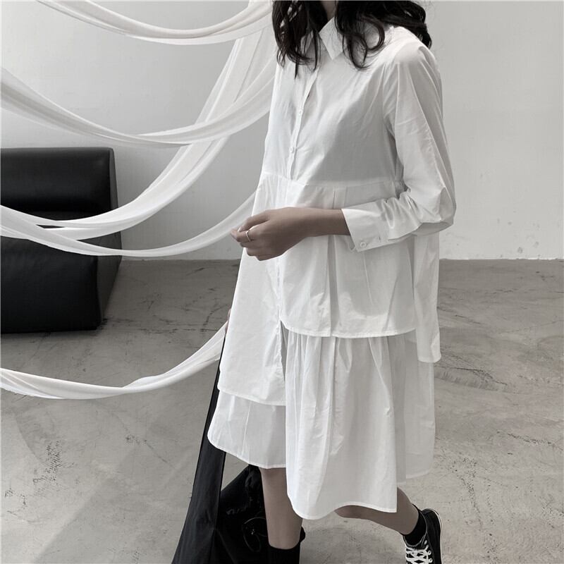 ダーク自家製ルーズプリーツミドル丈シャツ薄春 スプリング 春物 BWTB21725872993