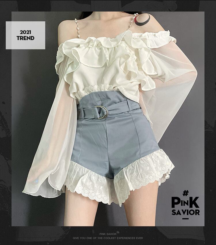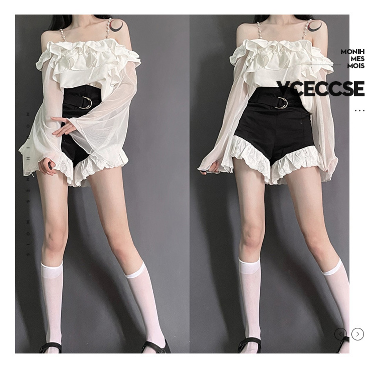 pinksaviorスプレーレーススタックワンショルダーパールチェーン日焼け止めクールトップ 真珠 PSTB94063147113