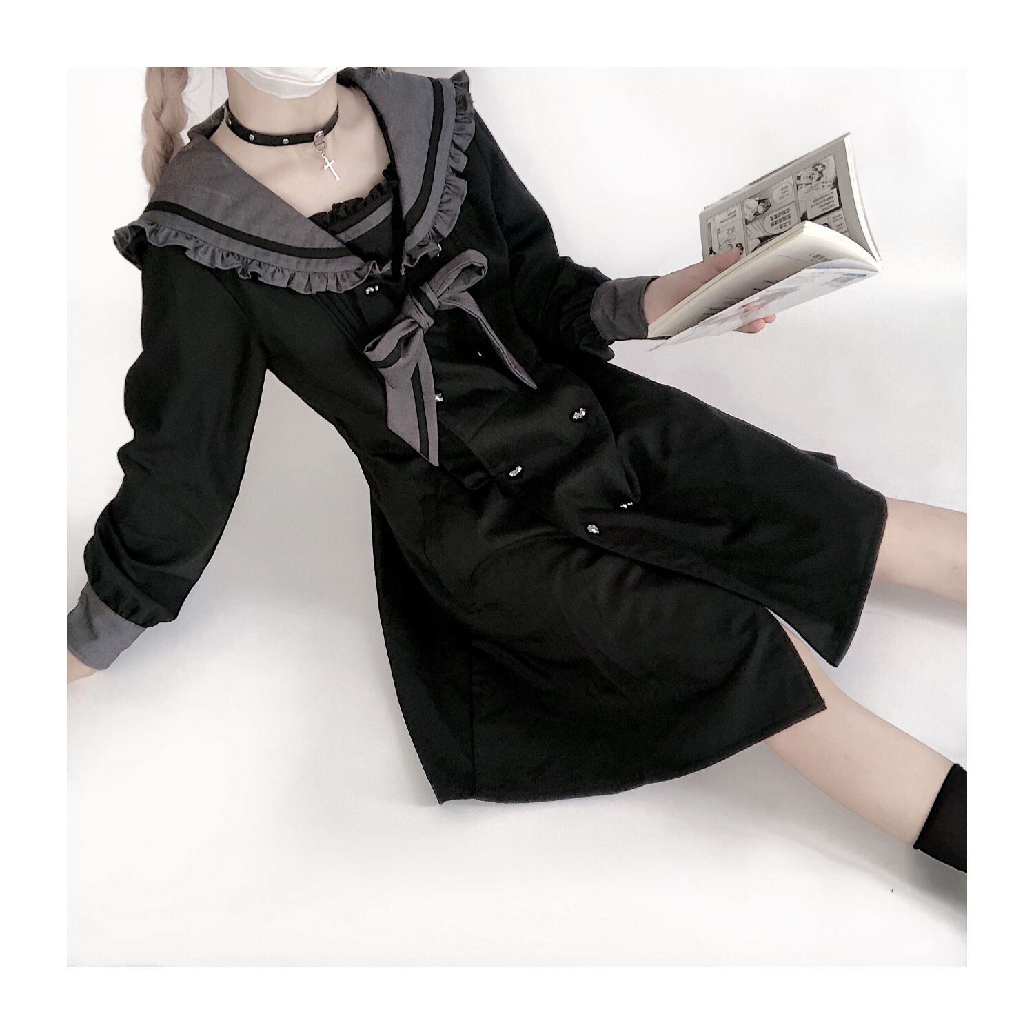 pinksaviorアリスアカデミー黒とグレーの高度なカラーマッチングデザインラブバックルネイビーベルトドレス ブラック ハーネス PSTB86530034238
