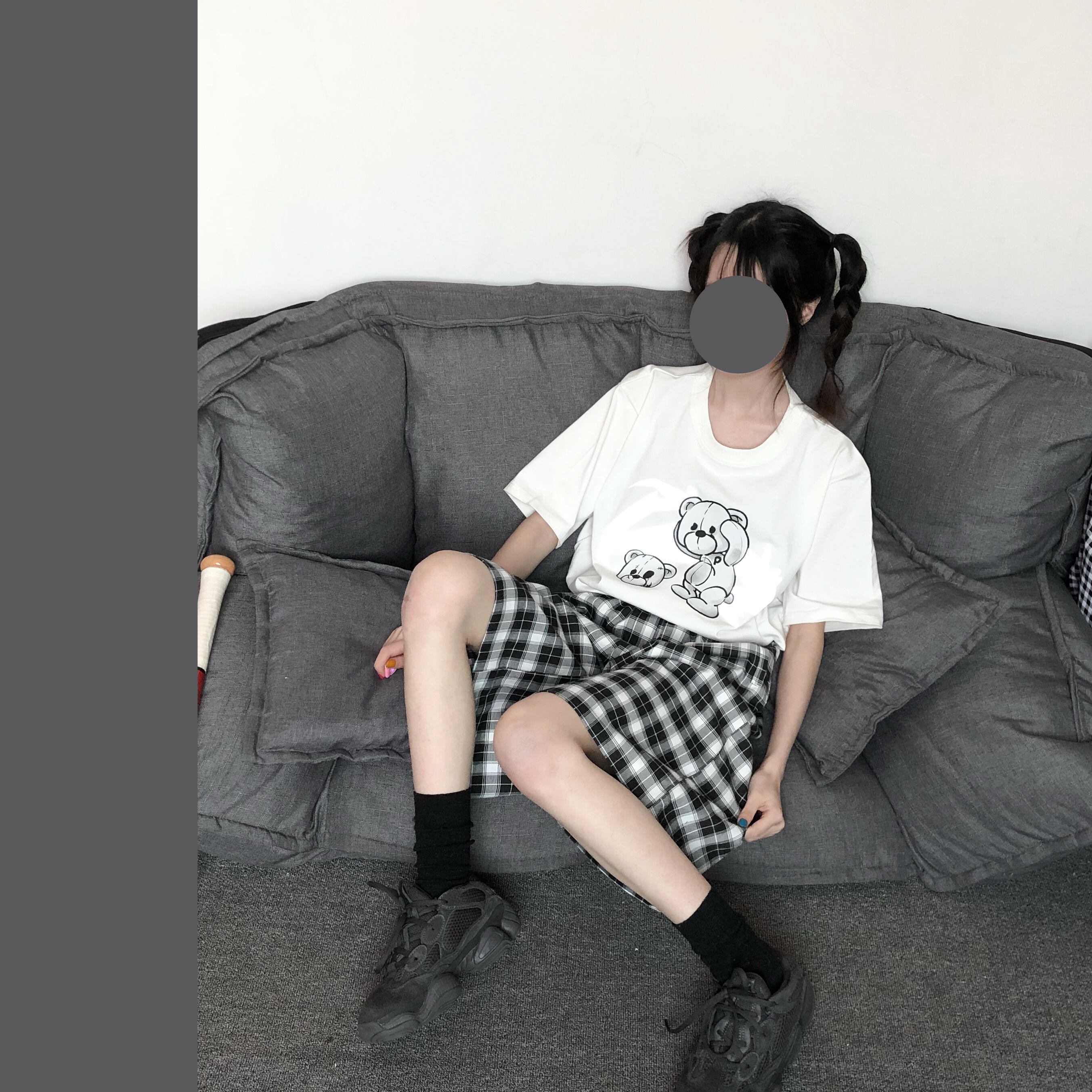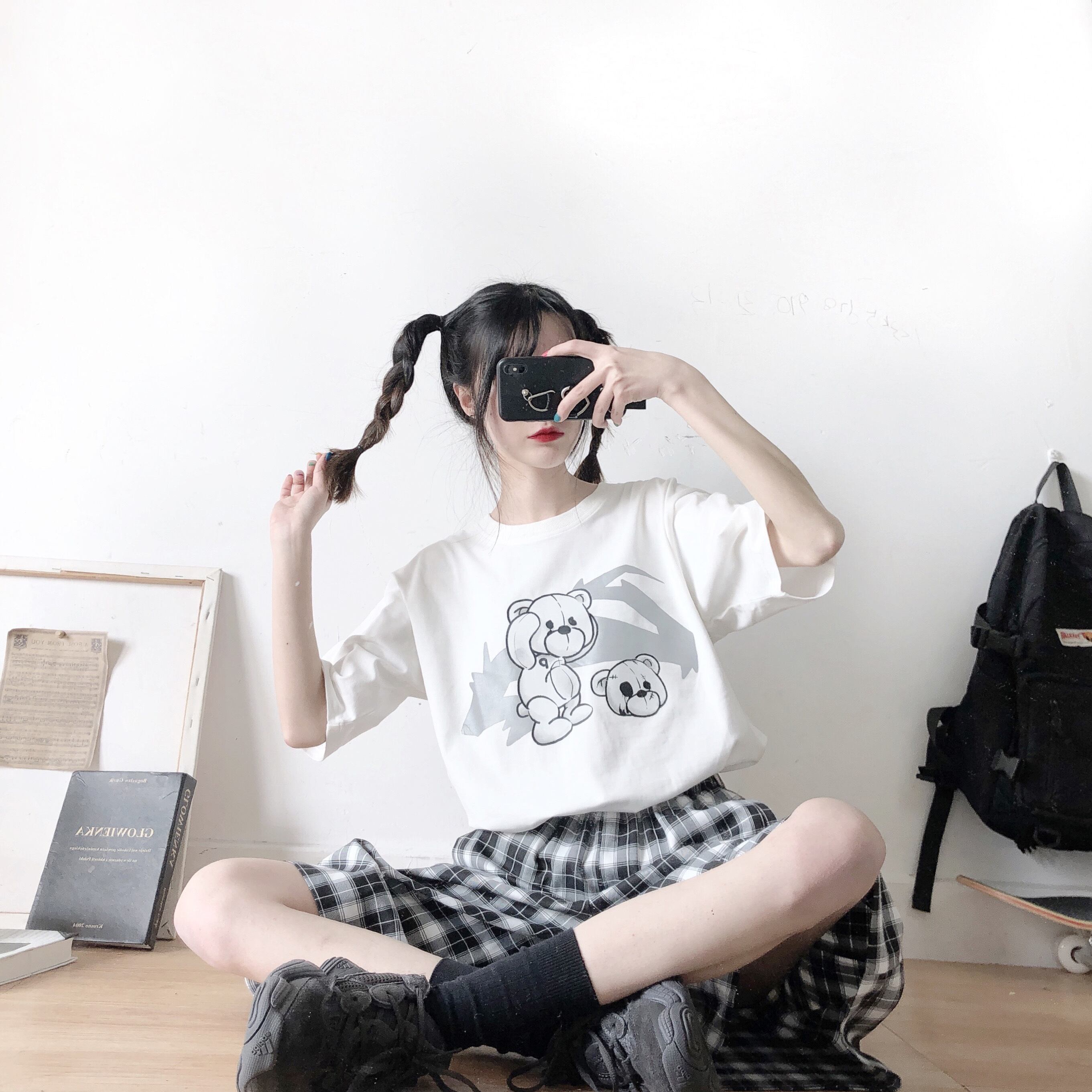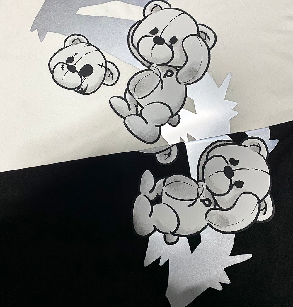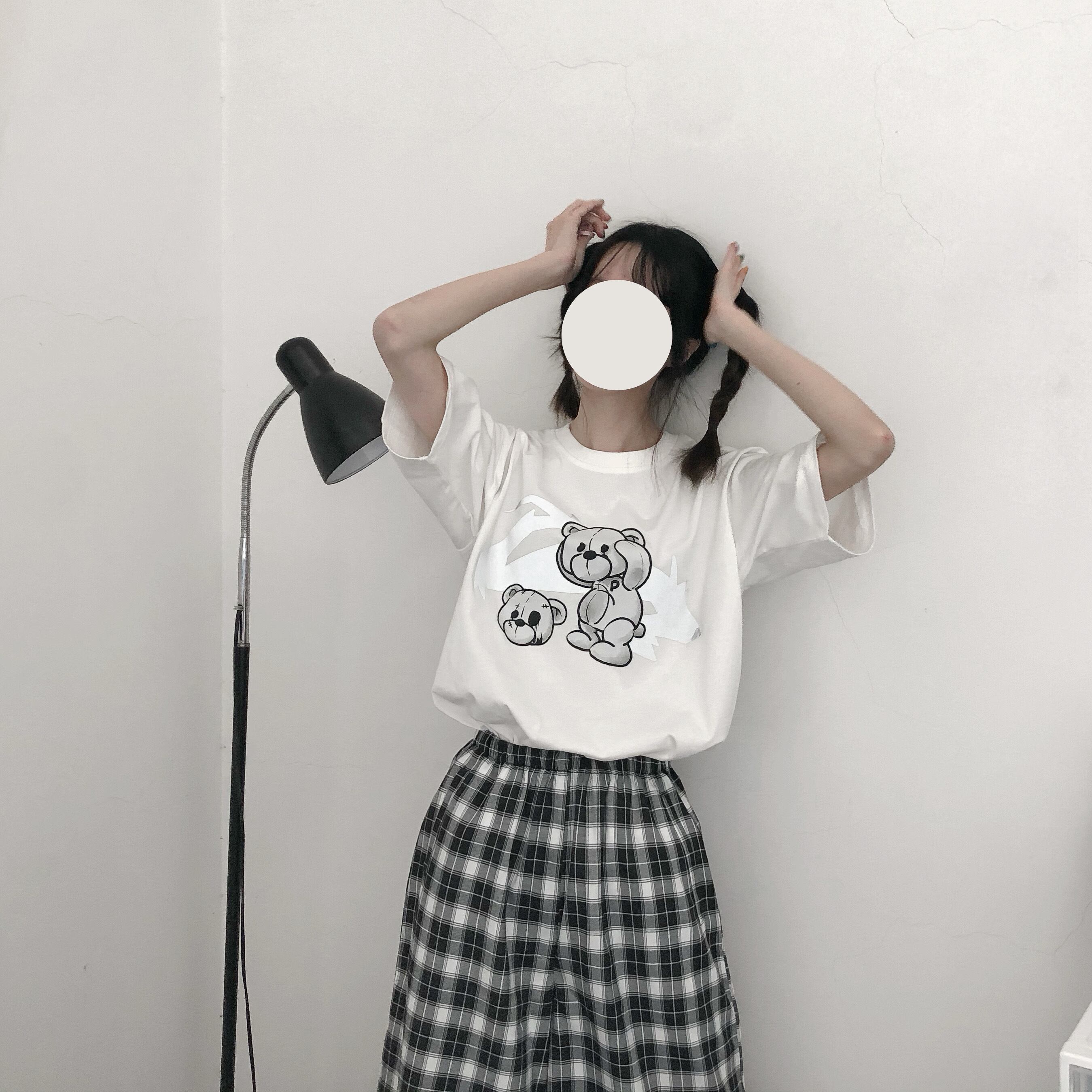 pinksaviorフロントとバックの印刷稲妻クマ反射黒と白の女性のTシャツ半袖カップルかわいい友達 ホワイト ブラック 大人ガーリー スウィート キュート カジュアル PSTB51277413887