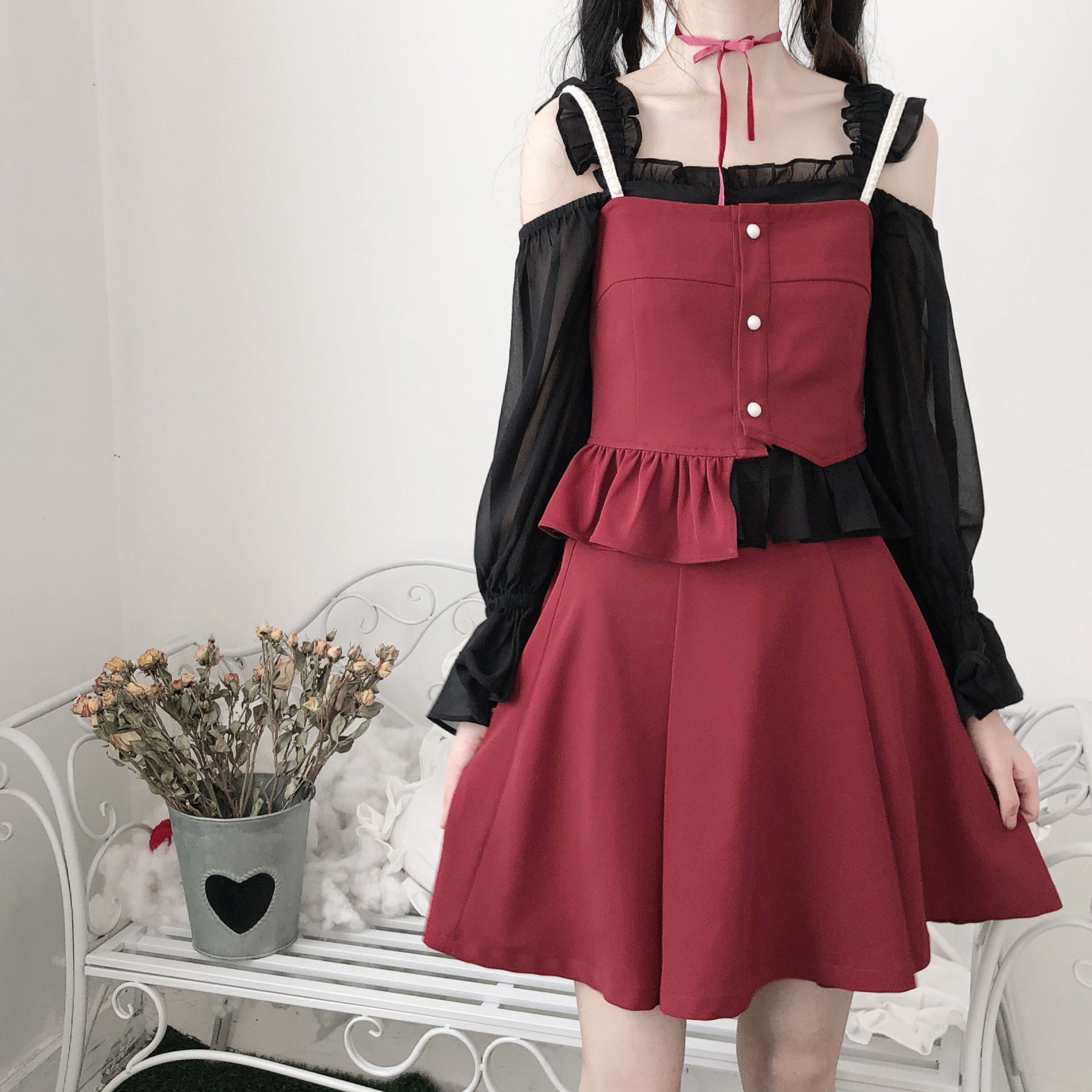 pinksaviorサマーベリーフランスの恋人赤と黒yスリムスリミングスーツ友達夏 レッド ブラック 大人ガーリー スウィート キュート カジュアル 夏物 PSTB12855573039