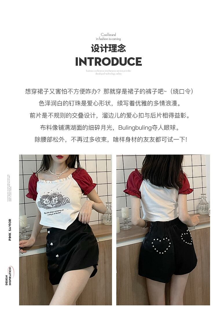 pinksavior愛ビーズ人魚投光照明黒不規則な細いウエスト弾性キュロット ブラック エラスティック 伸縮 PSTB61297464948