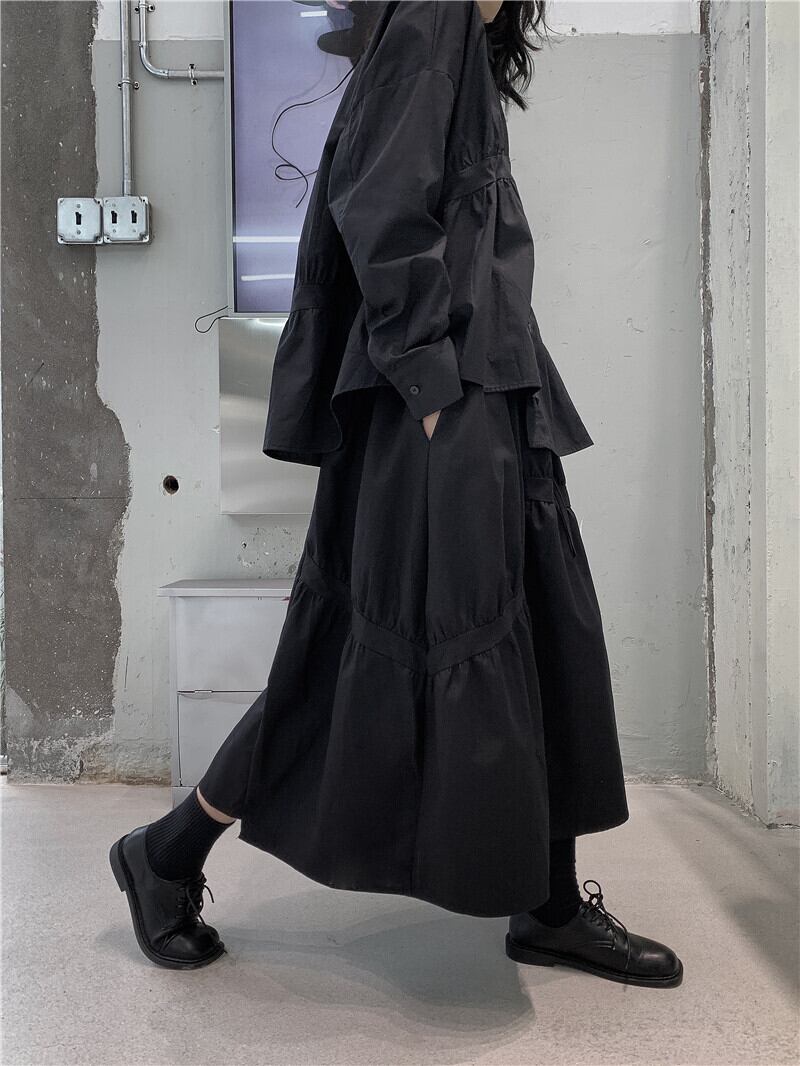 BLACK ANDWHITEダークプリーツデザインスカート秋新作aラインスカートイレギュラーロングスカート ホワイト ブラック オータム 秋物 BWTB66339468778