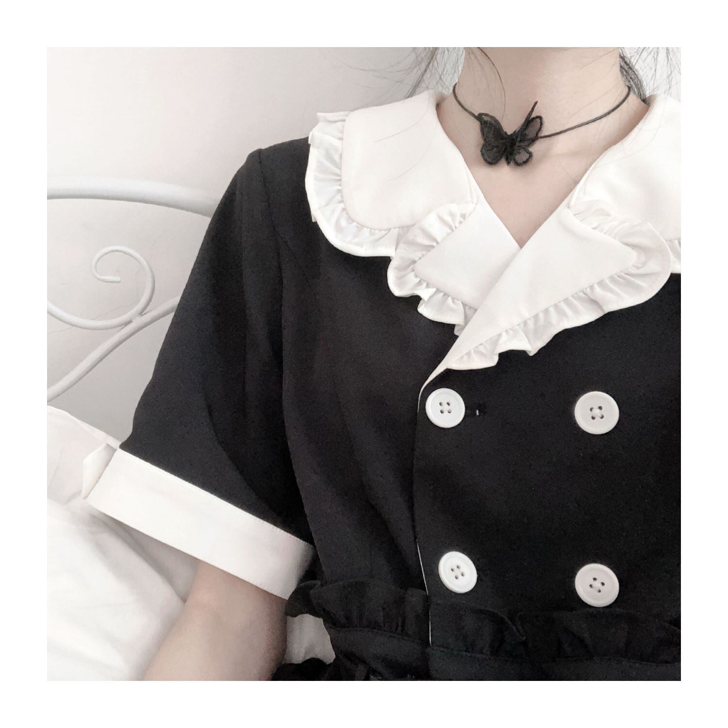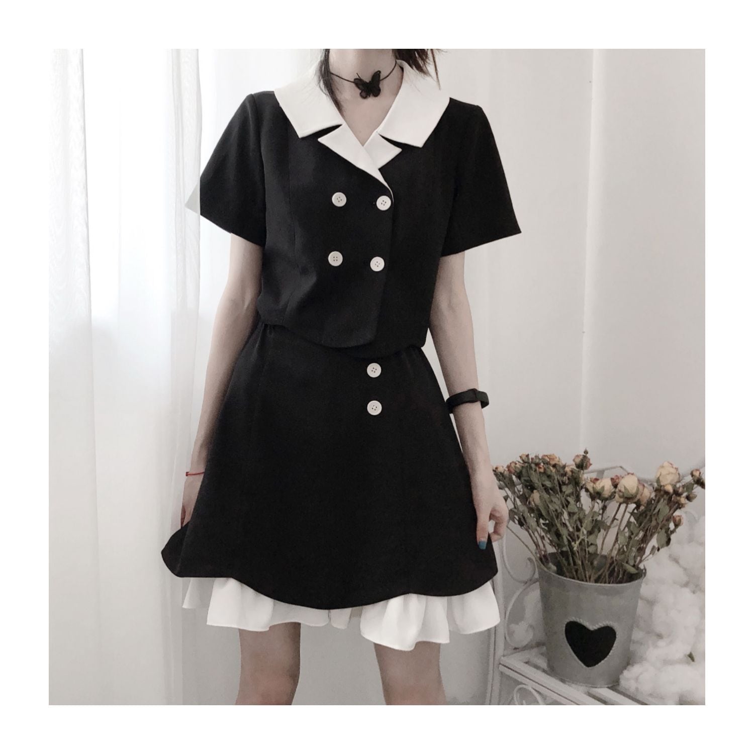 色:ブラックショートコート,黒スカート,ブルーショートコート,青いスカート,黒いドレス,青い服
