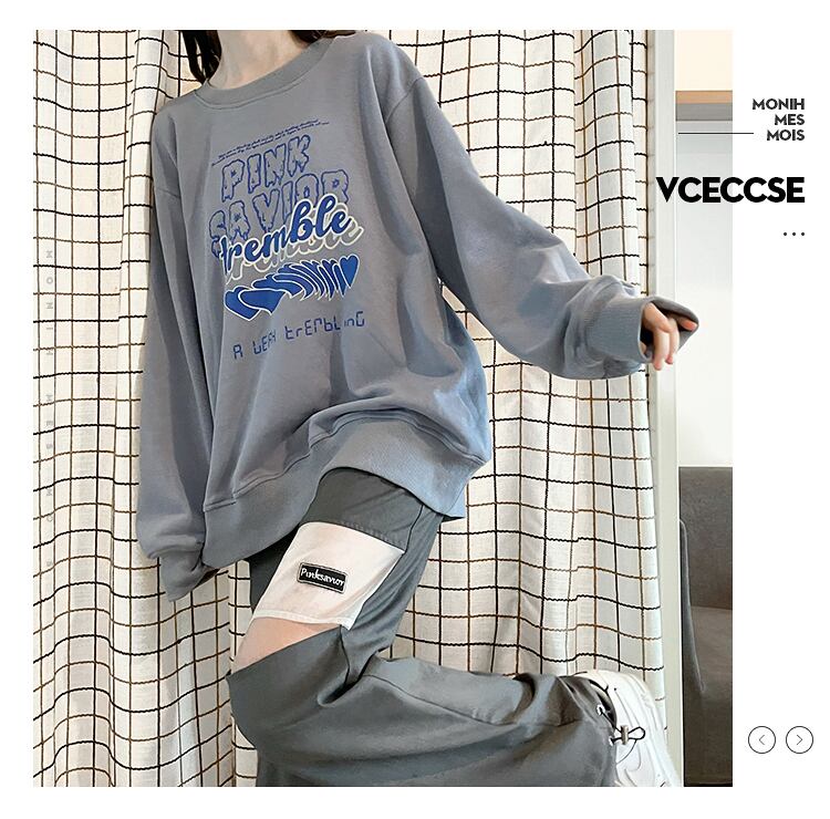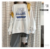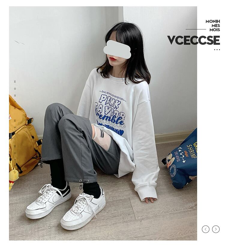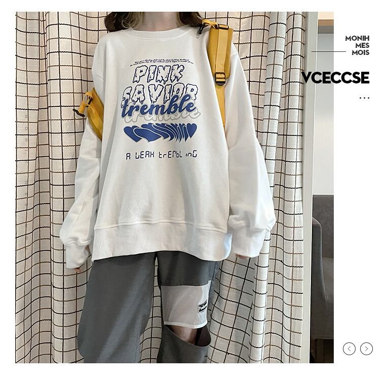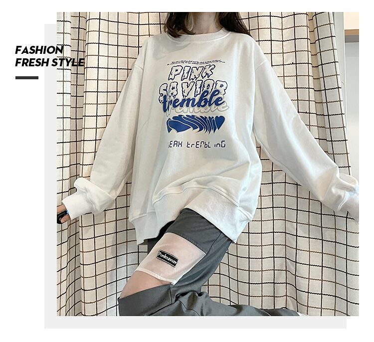 pinksavior青と白のロマンチックな愛の春と秋の綿テリーラウンドネックの毎日のセーター ホワイト ブルー コットン スプリング 春物 オータム 秋物 Oネック PSTB68192487536