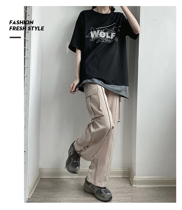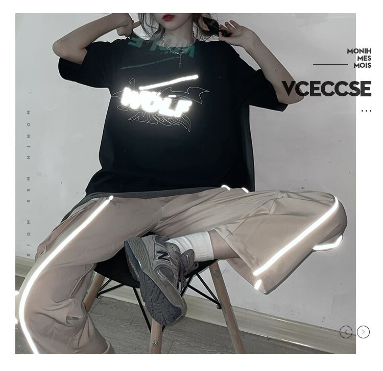 pinksavior3色反射デコレーションストリートカジュアルドレープ伸縮性ウエストパンツ エラスティック PSTB28255307539