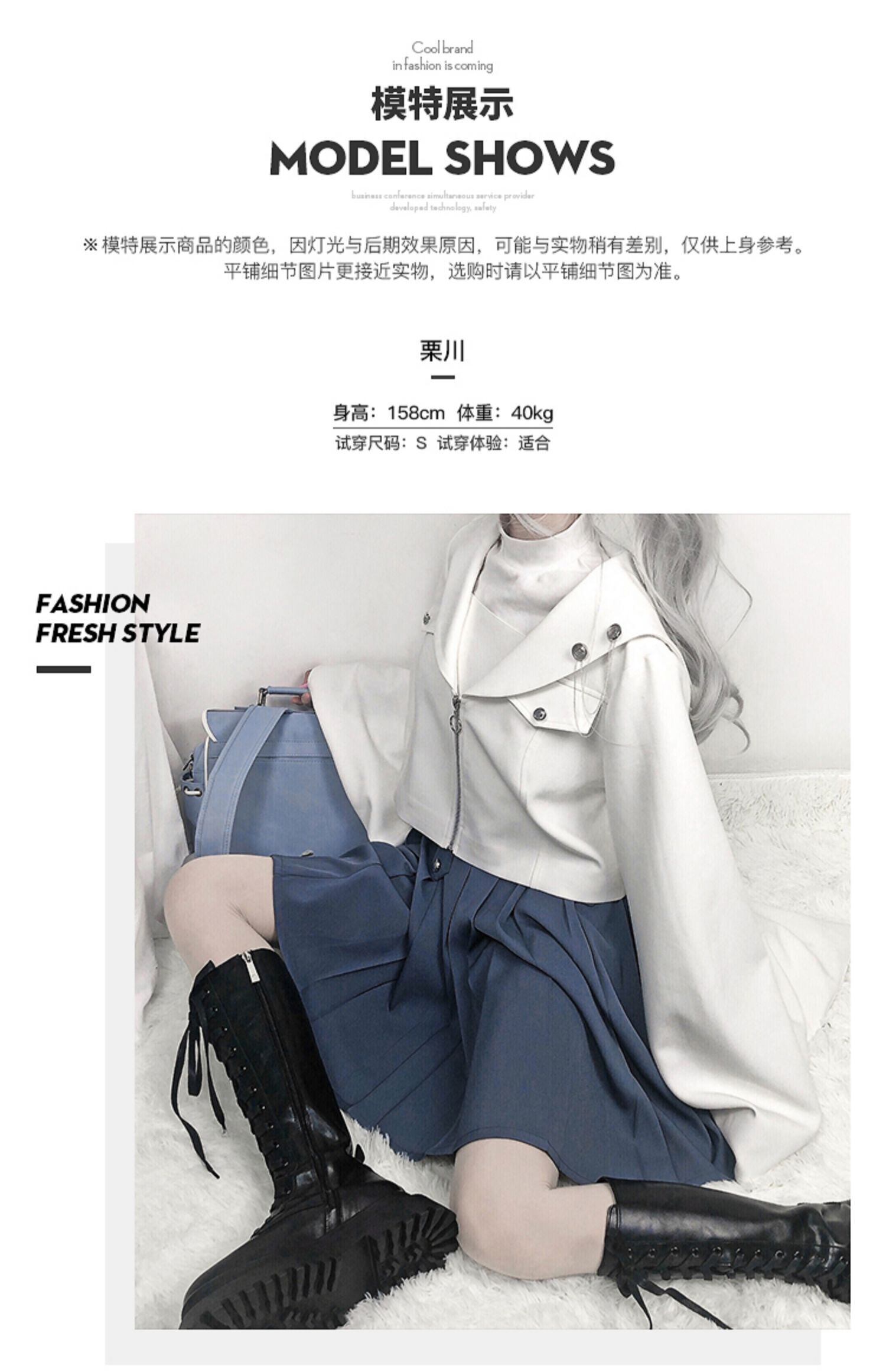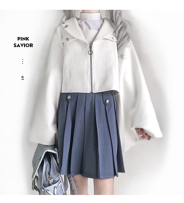 色:白いショートジッパーコート,ホワイトレギュラーボタンコート,ブループリーツスカート,ブルーベストドレス,ピンクのジッパージャケット,ピンクのレギュラーボタンコート,赤プリーツスカート,赤いベストドレス