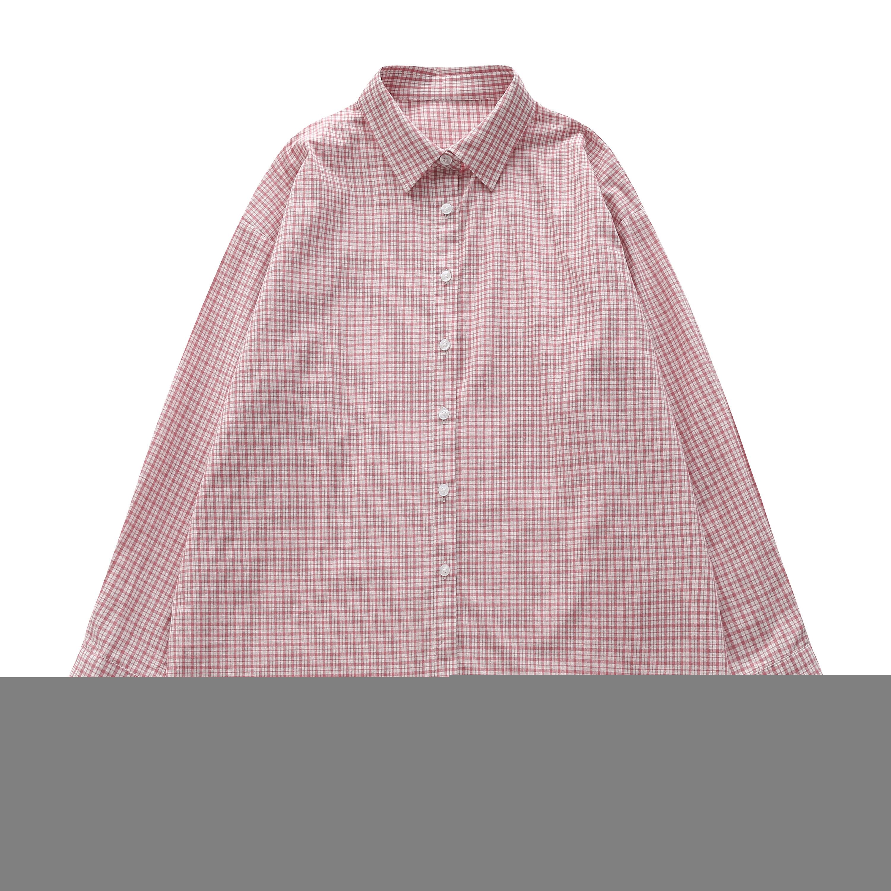 pinksavior初秋、日焼け止め多目的パウダーブルーとブラックのスモールグリッドカレッジカジュアルシャツスポット オータム 秋物 PSTB34902587149