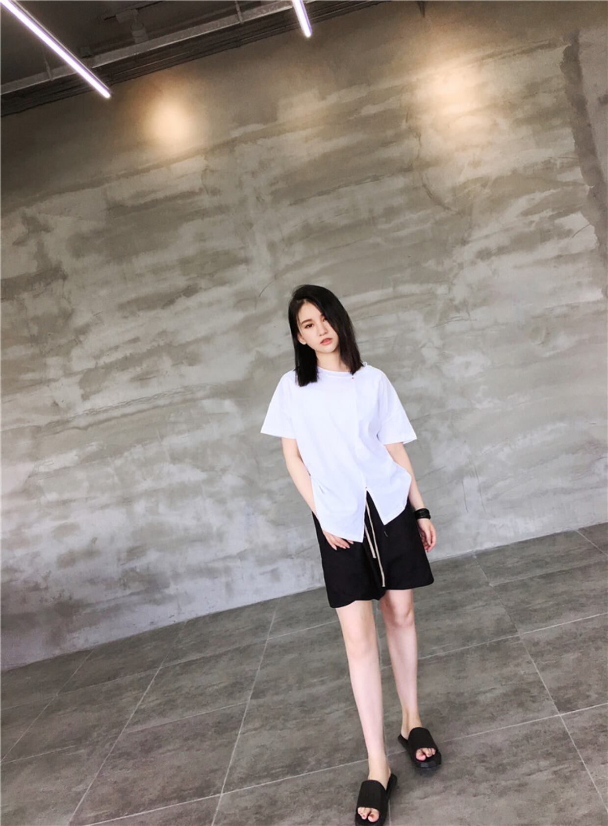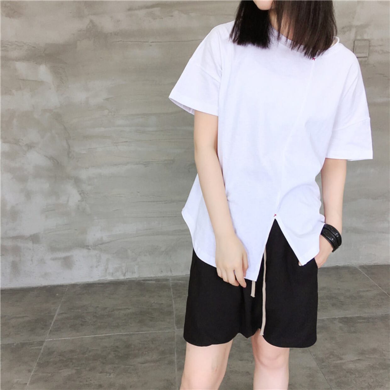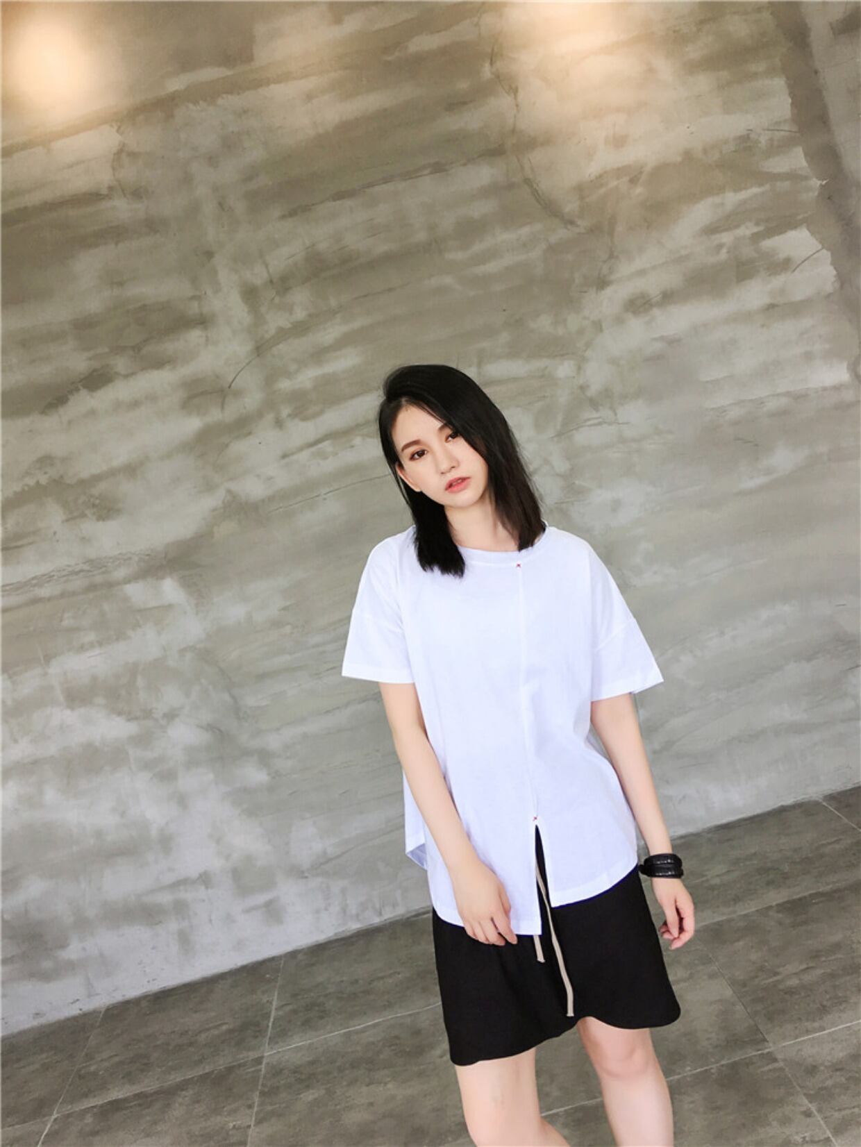 BLACK ANDWHITEダークブラック半袖女性2018夏新作イーズルーズイレギュラーTシャツ ホワイト サマー 夏物 BWTB72094732255