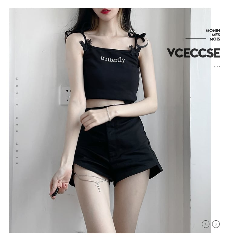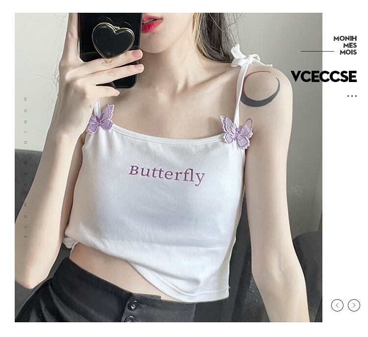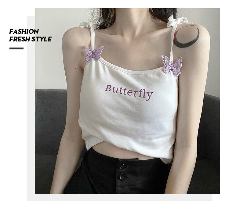 立体バタフライ刺?キラキラプリントショルダーストラップ調節可能な伸縮性オデルテクスチャ半袖 ショート ピンク ハーフスリーブ 刺繍 エラスティック アジャスタブル PSTB98331265910