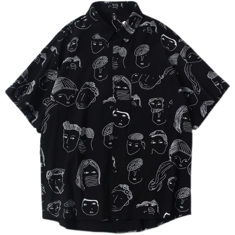 黒と白のダークフラワーシャツショートメンズとレディースカップルルーズリネンコットン夏の新しい薄いセクション ホワイト ブラック サマー 夏物 フラワーデザイン BWTB82367646216