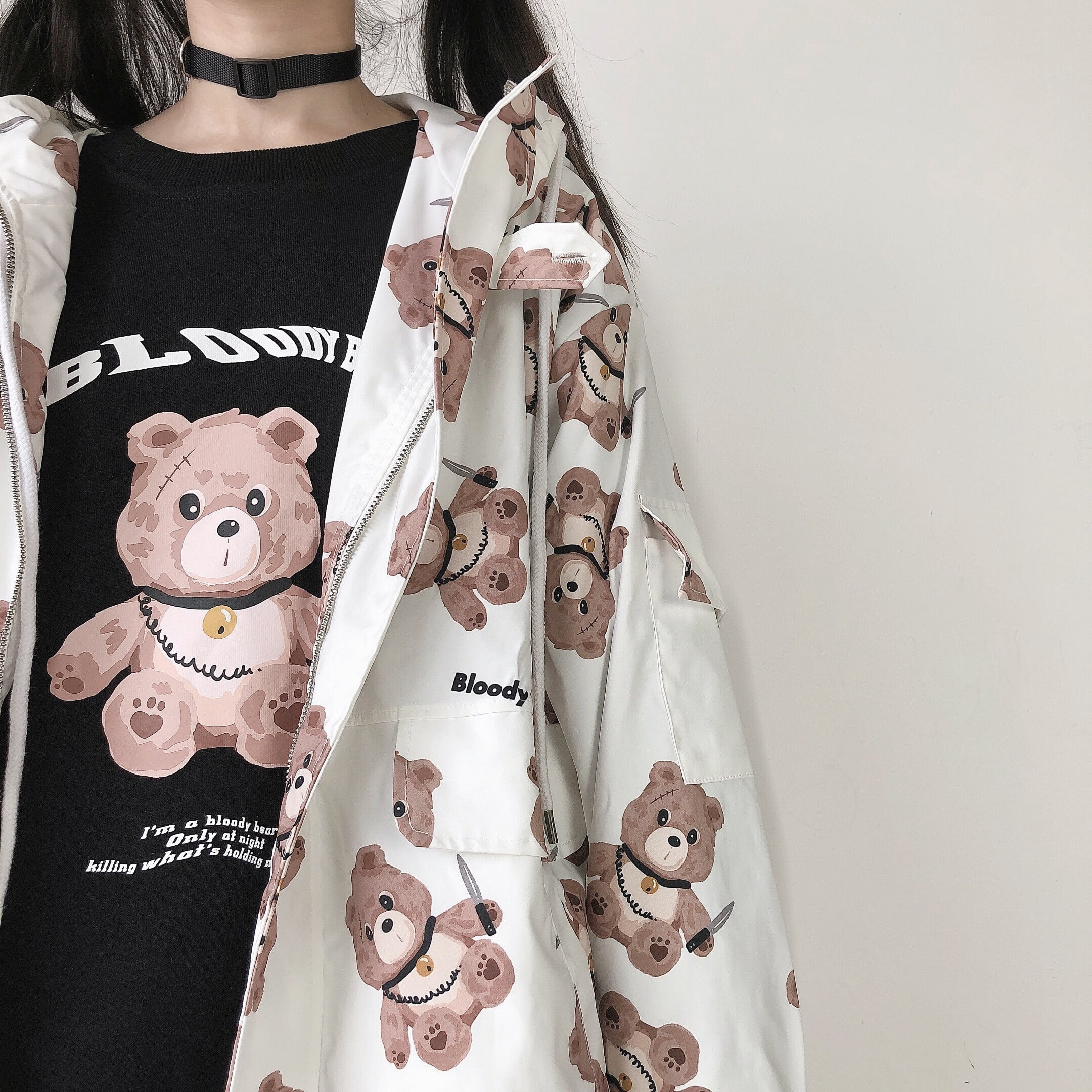 pinksavior(killing bear)デザインベアフルプリントプルオーバージャケットフード付きジャケット ピンク PSTB28757253672