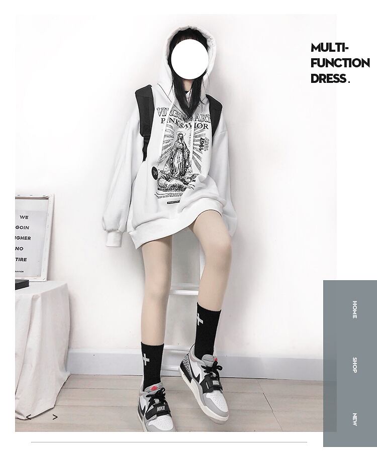 pinksaviorバージングラフィティ黒と白のプリントが涼しい秋と冬のカップルの友人のフード付きセーターを厚くします ホワイト ブラック オータム 秋物 ウィンター 冬物 PSTB54534569274