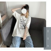 pinksaviorの手紙の落書きの内側と外側は、純綿のルーズな毎日のオールマッチ半袖Tシャツを着ています コットン ピュア PSTB58934416411
