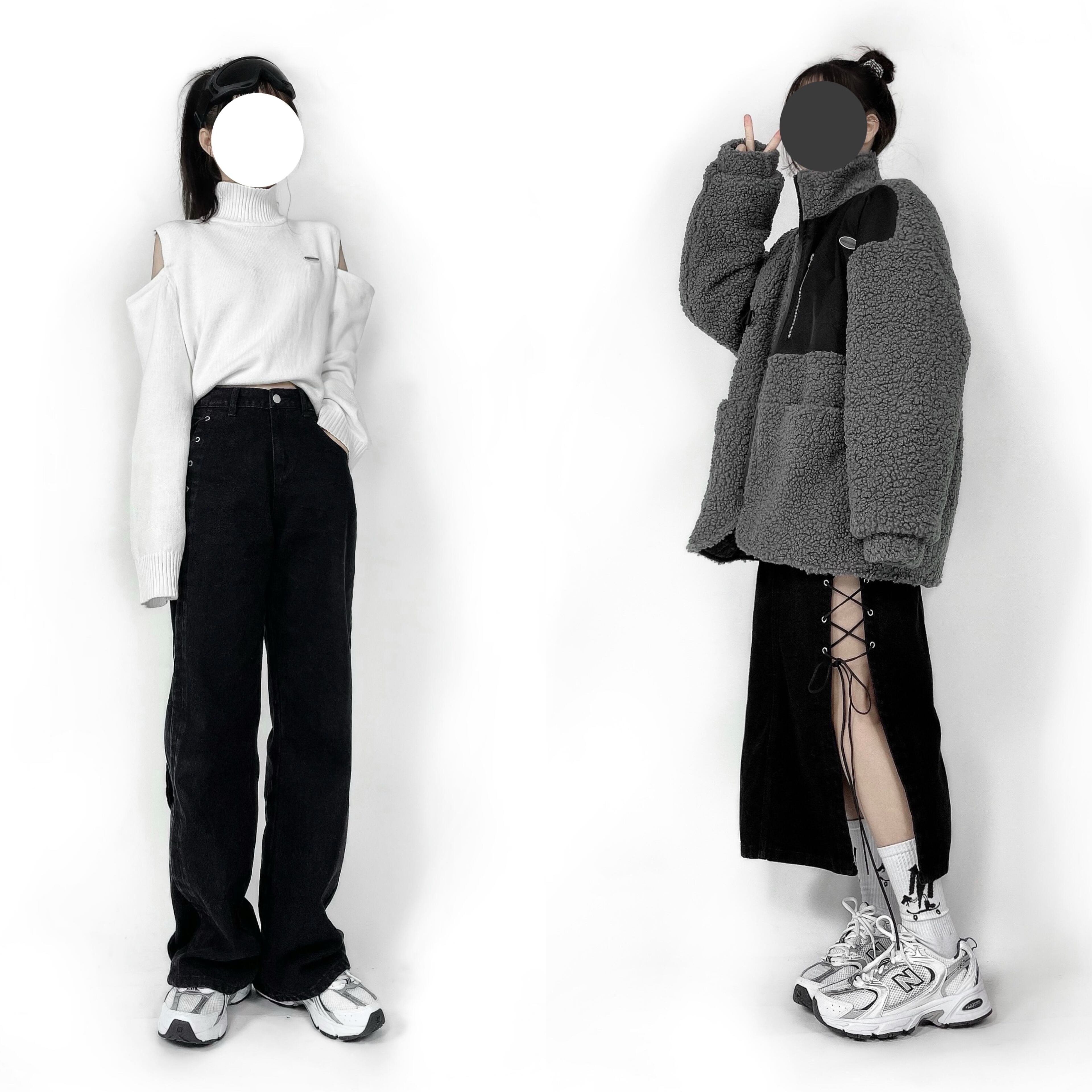 pinksavior包帯特別なデザイン黒の春と秋のズボンワイドレッグジーンズハーフスカート ブラック スプリング 春物 オータム 秋物 PSTB58575273370