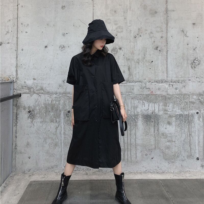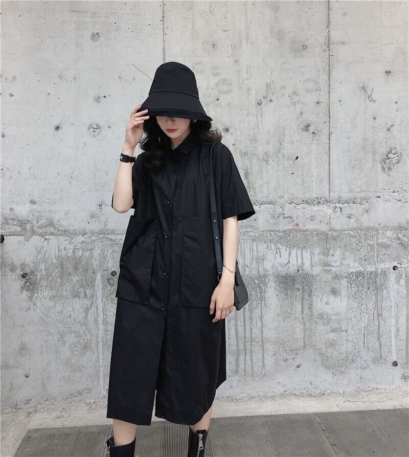 BLACK ANDWHITEダークオリジナルデザインシャツワンピースシンプルルーズ半袖シャツワンピース夏 ショート ホワイト ブラック ハーフスリーブ サマー 夏物 BWTB98755349770