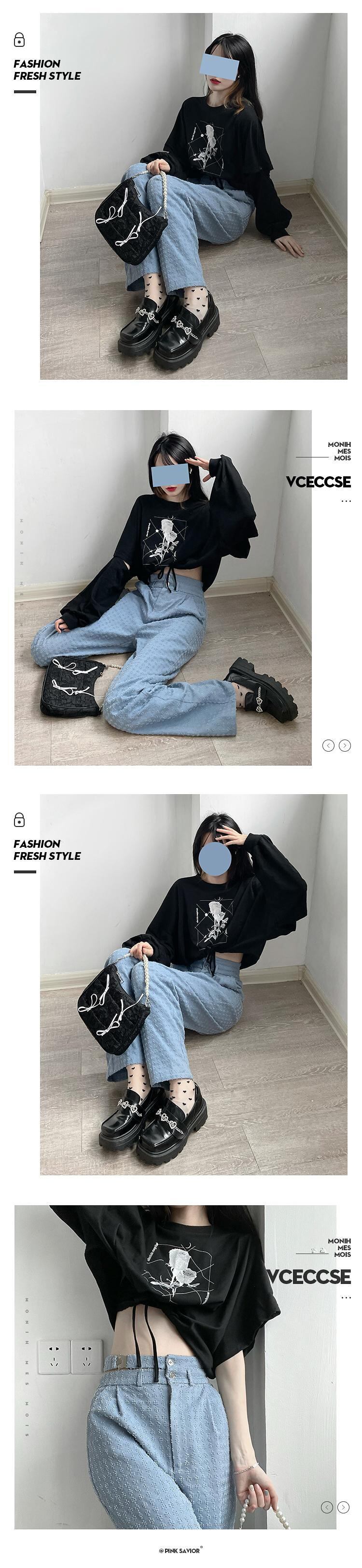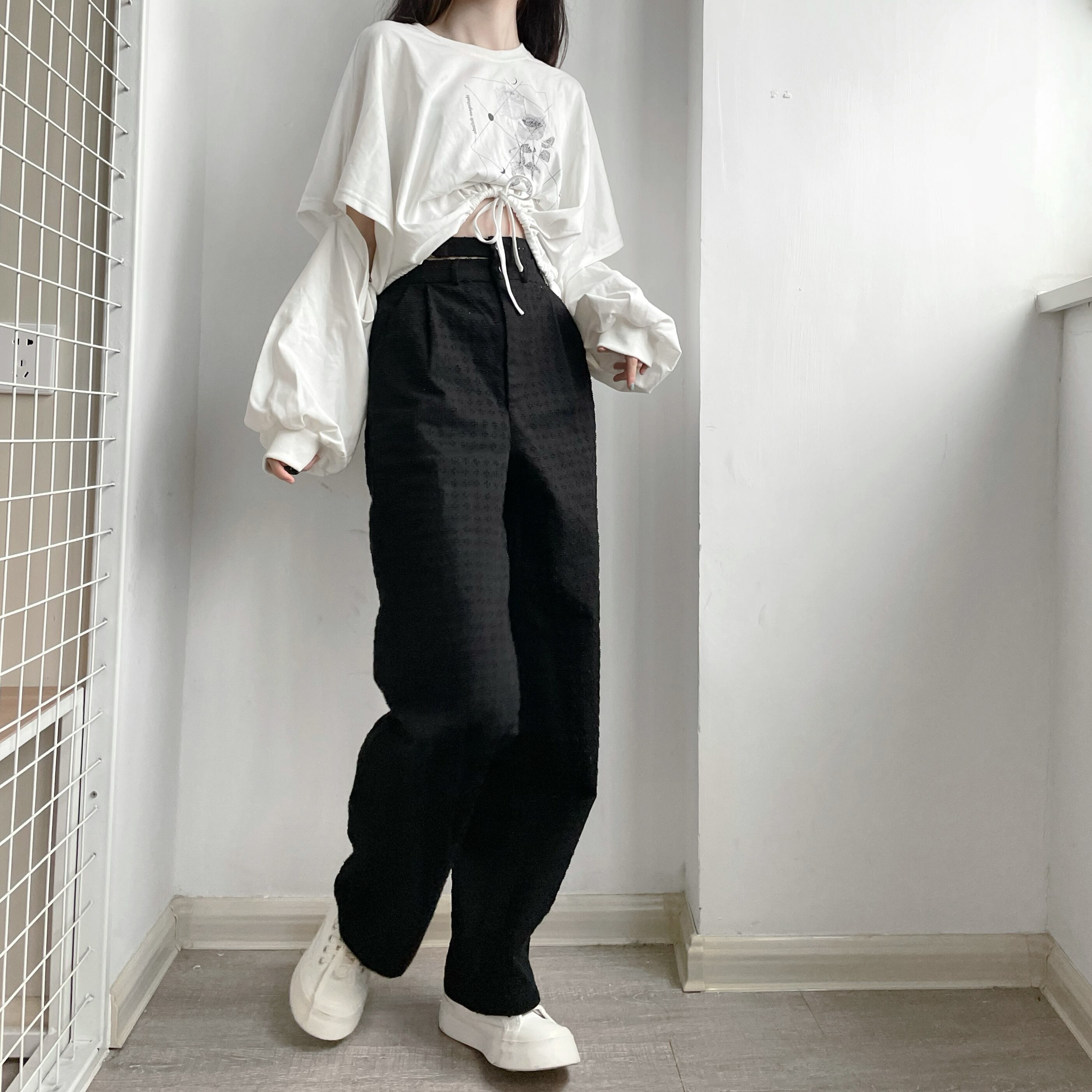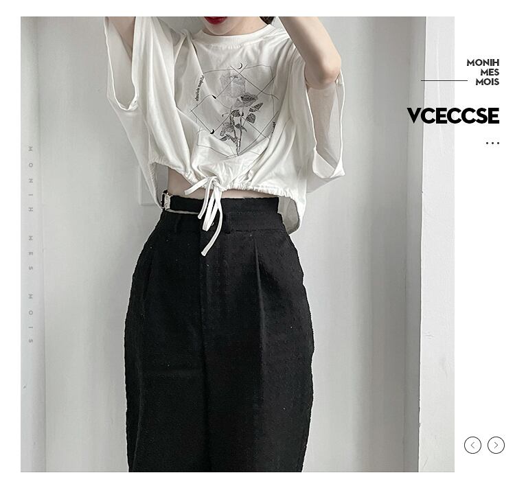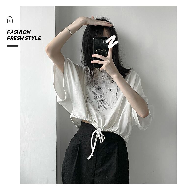 pinksaviorの取り外し可能な袖は、夏と秋にルーズな裾の巾着黒と白のギャラクシーローズコットンTシャツを着ています ホワイト ブラック サマー 夏物 オータム 秋物 PSTB52959786303