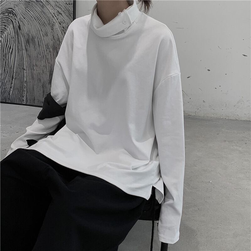 黒と白の濃い長袖Tの男性と女性のカップルのベース秋と冬の新しい厚いルーズ ロング ホワイト ブラック オータム 秋物 ウィンター 冬物 BWTB44319350331