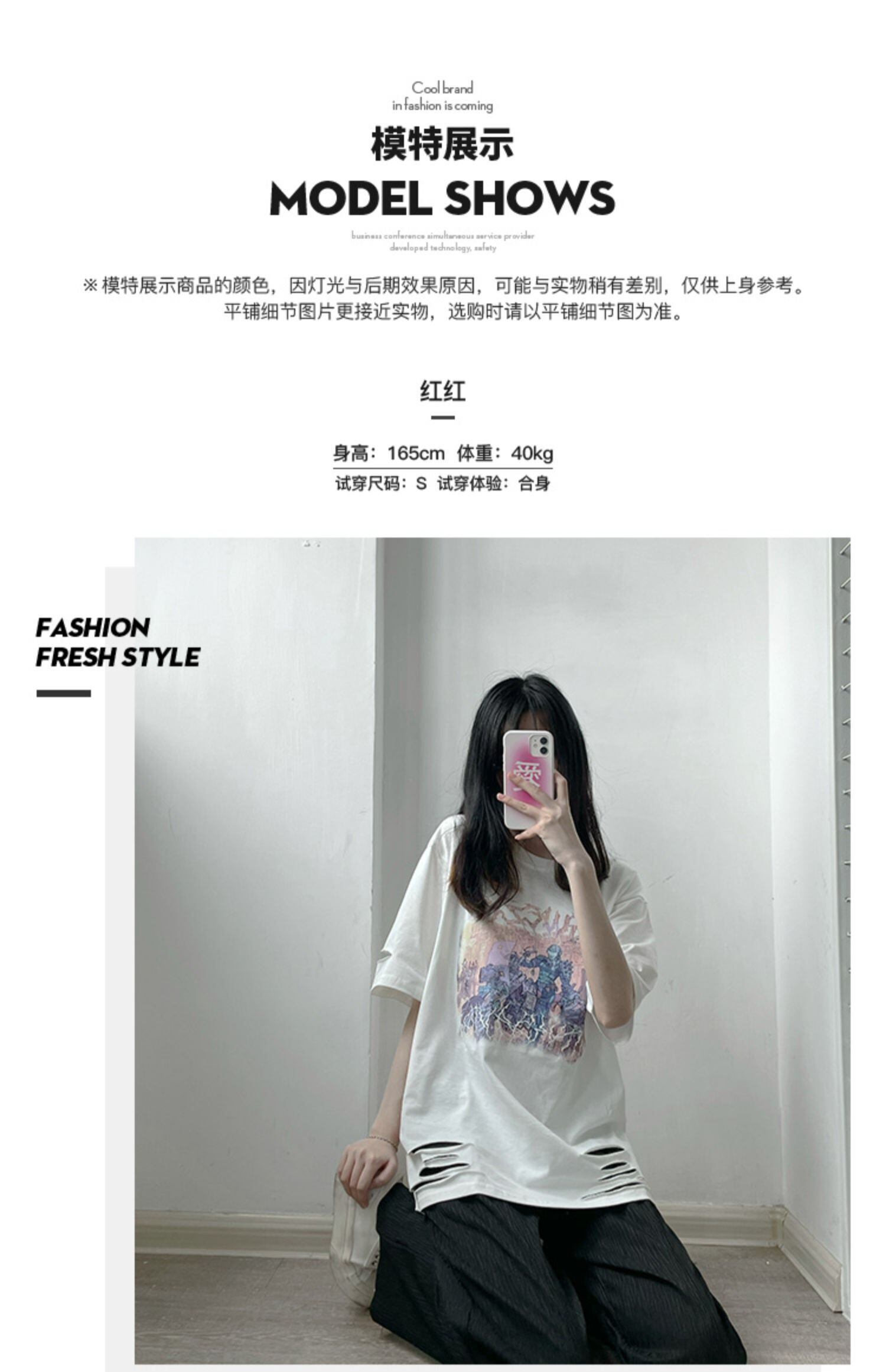 pinksavior夏擦り切れ破れたエッジデザインフィルムイラスト黒と白のカジュ??アルコットンT ホワイト ブラック カジュアル サマー 夏物 PSTB23135171806