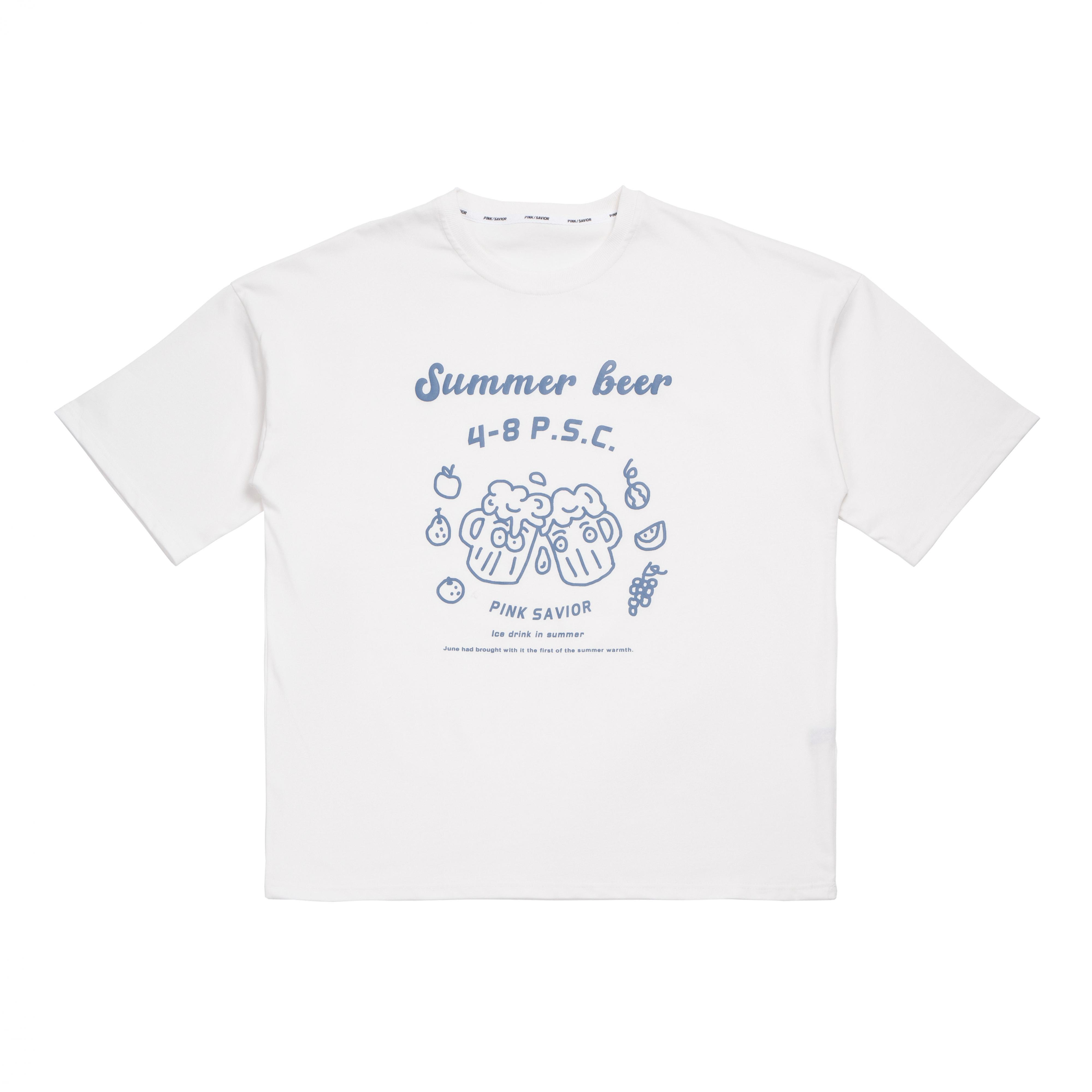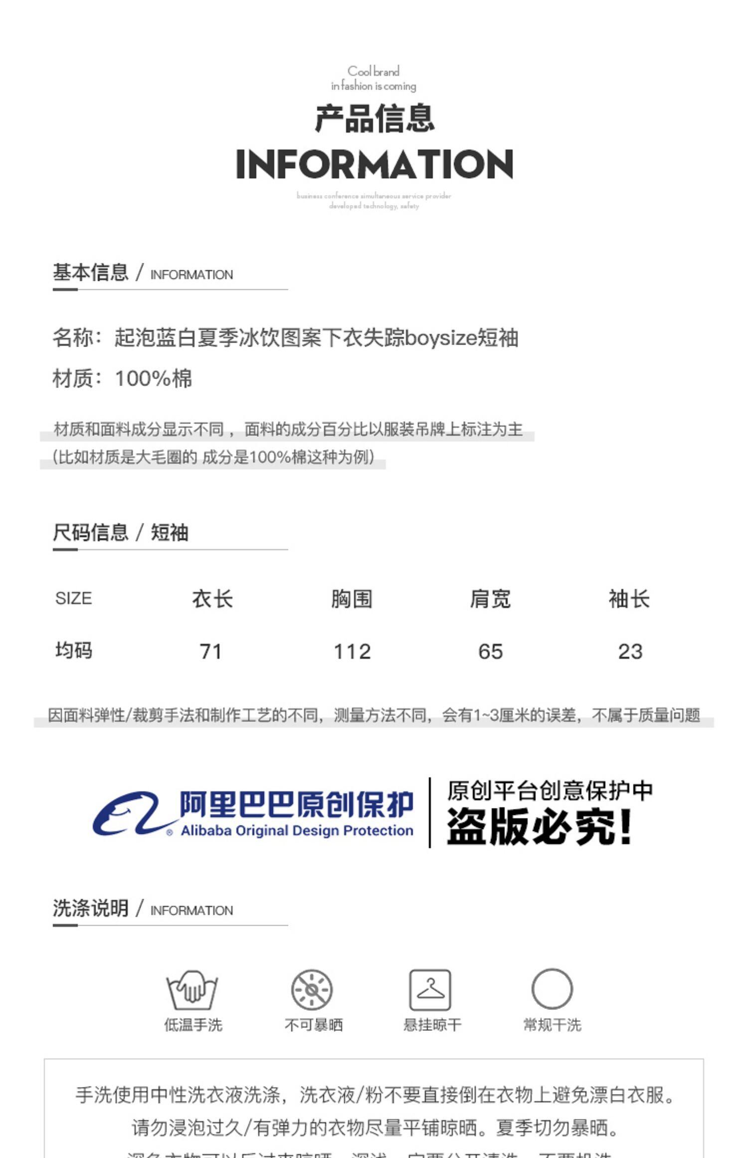 pinksavior泡立つ青と白の夏のアイスドリンクパターンのボトムスにボーイサイズの半袖がありません ショート ホワイト ブルー ハーフスリーブ サマー 夏物 PSTB4016290646