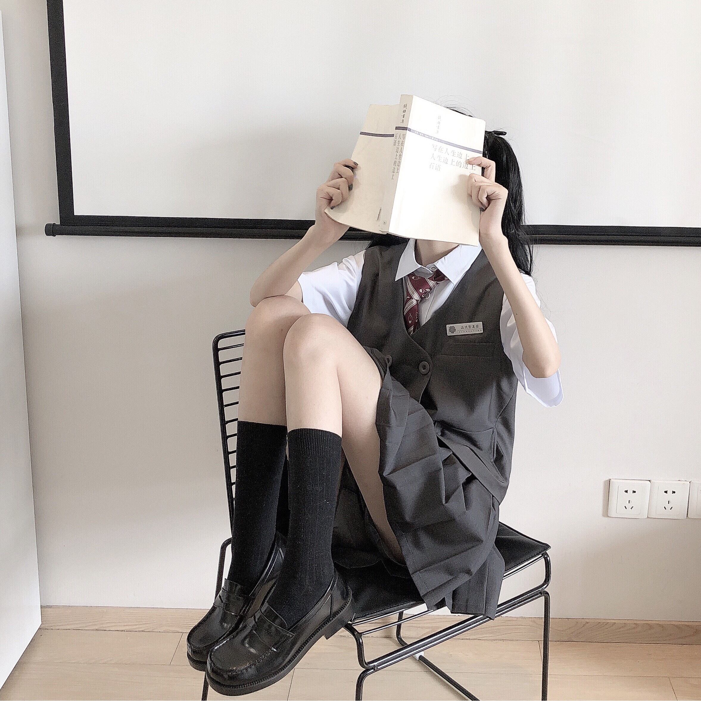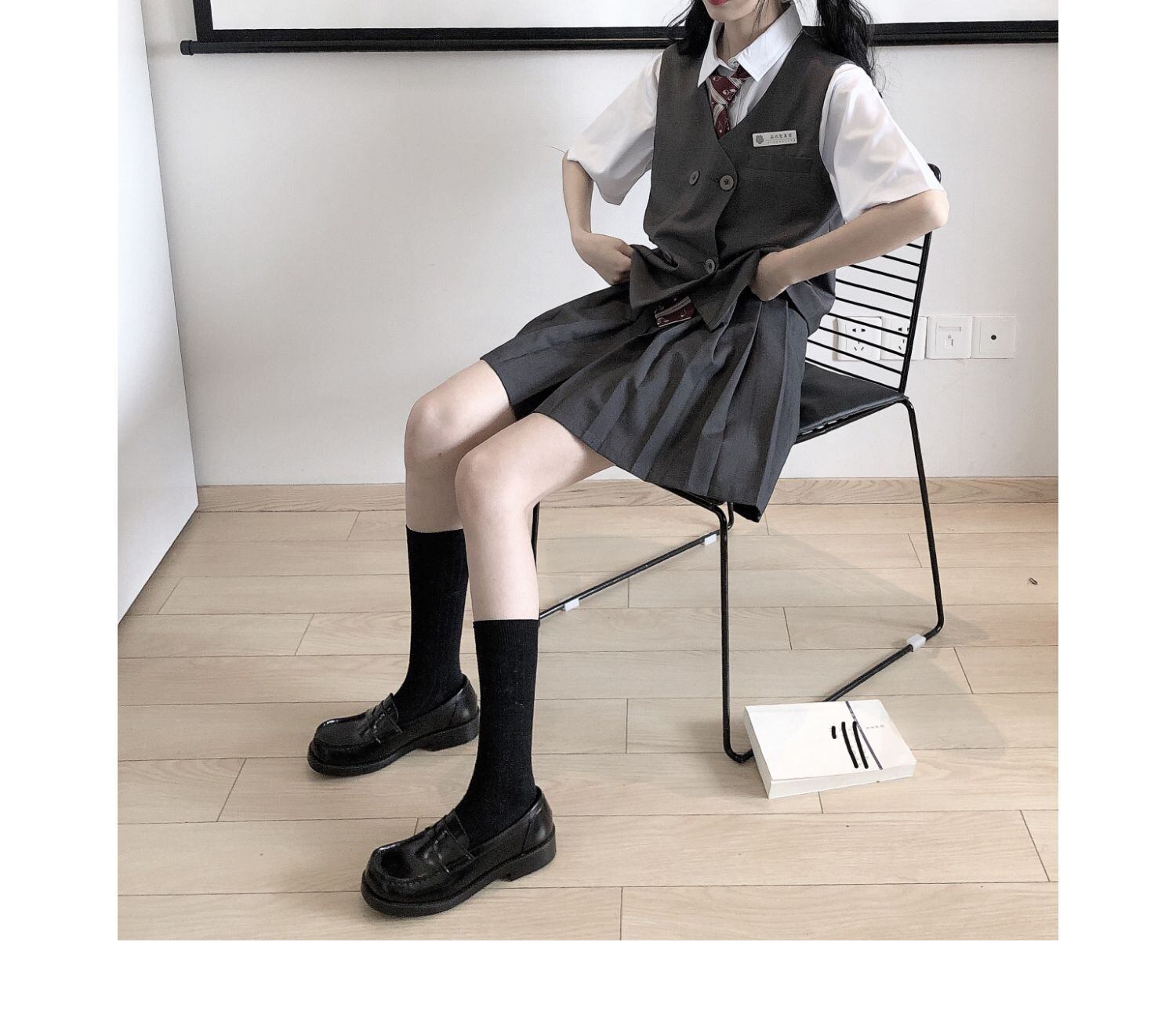 色:白の半袖ブラウス先行販売,グレーベスト先行販売,グレープリーツスカートスポット,ブラックベスト先行販売,ブラックプリーツスカート先行販売,長袖の白いシャツ(青と白)