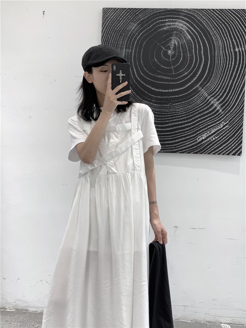 黒と白のダークブラックドレス黒と白のシンプルな山本風イーズルーズフェアリーカジュアルルーズ ホワイト BWTB26846365637