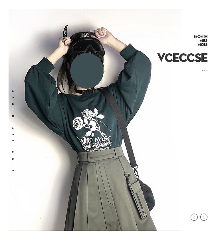 pinksaviorダークグリーンとホワイトのワイルドローズプリントレトロオリジナル長袖スリーブルーズスリムセーター ロング PSTB60216736102