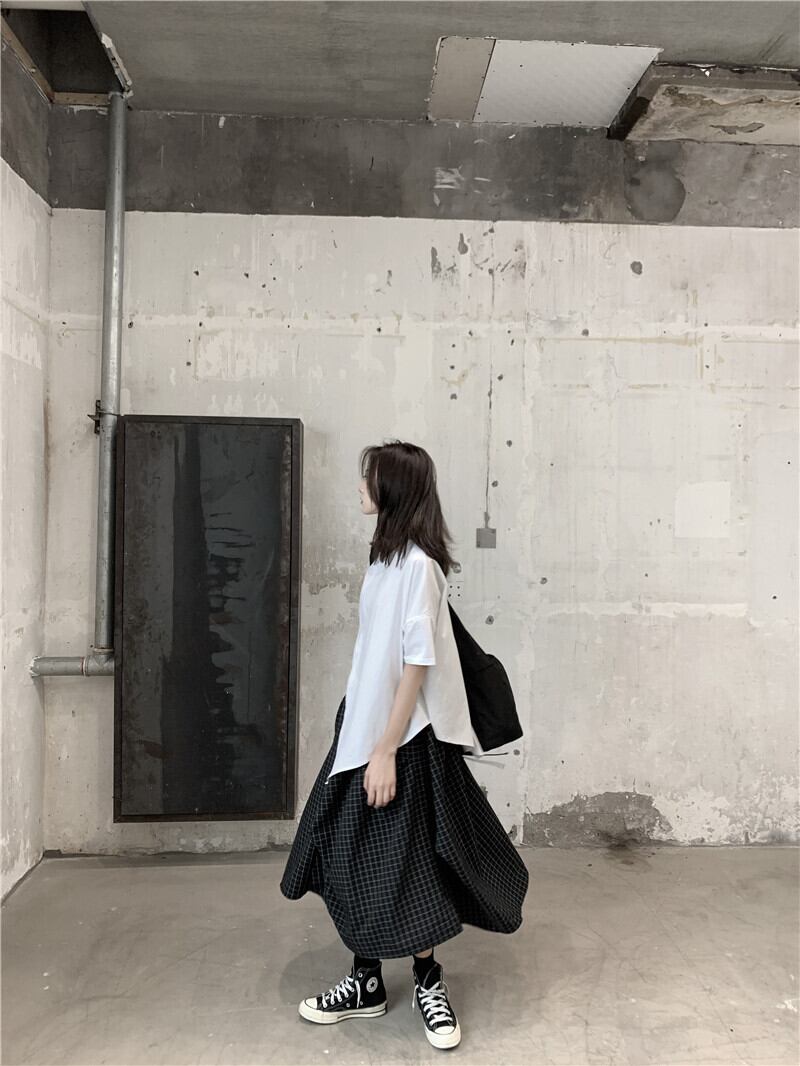 BLACK ANDWHITEダークチェック柄プリーツアシンメトリーデザインスカートese山本風夏 ホワイト ブラック サマー 夏物 BWTB86379923889