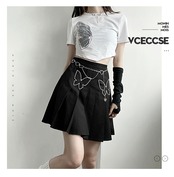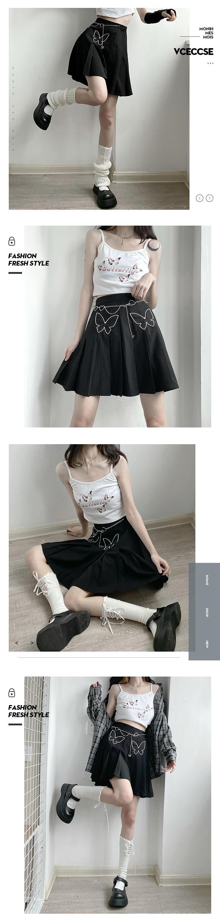 pinksaviorバタフライ刺?サマーコロケーションブラックスリムレギンスプリーツスカートハイウエストAラインスカート ハイウェスト 刺繍 夏物 PSTB99484643459