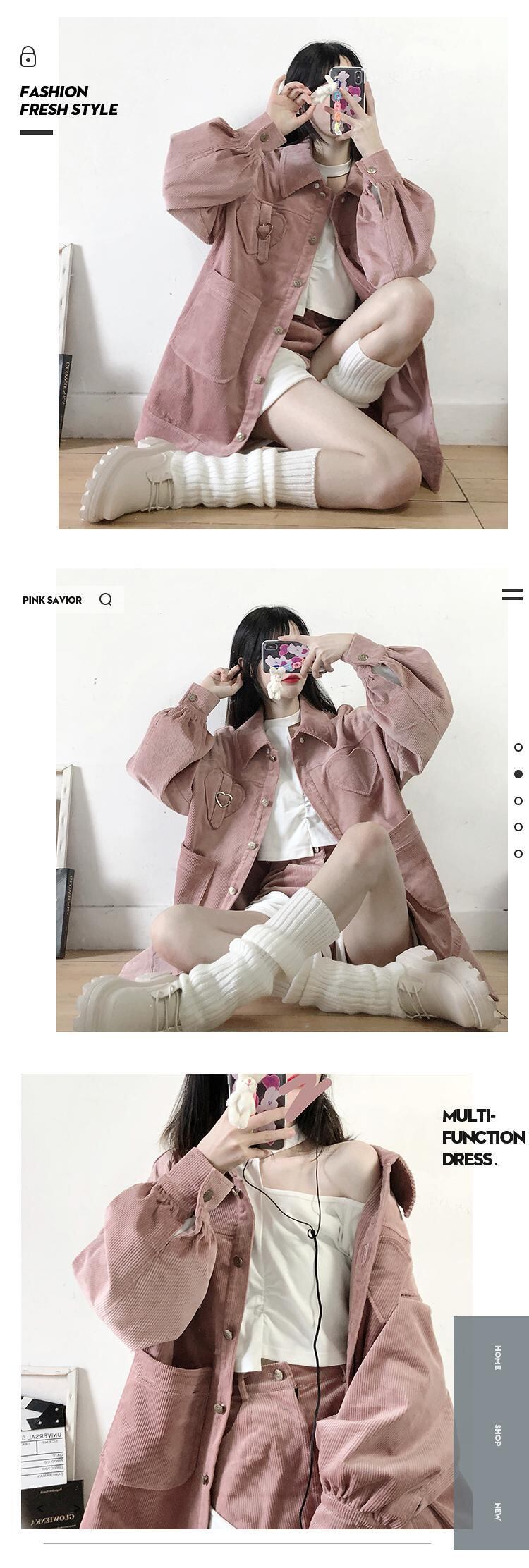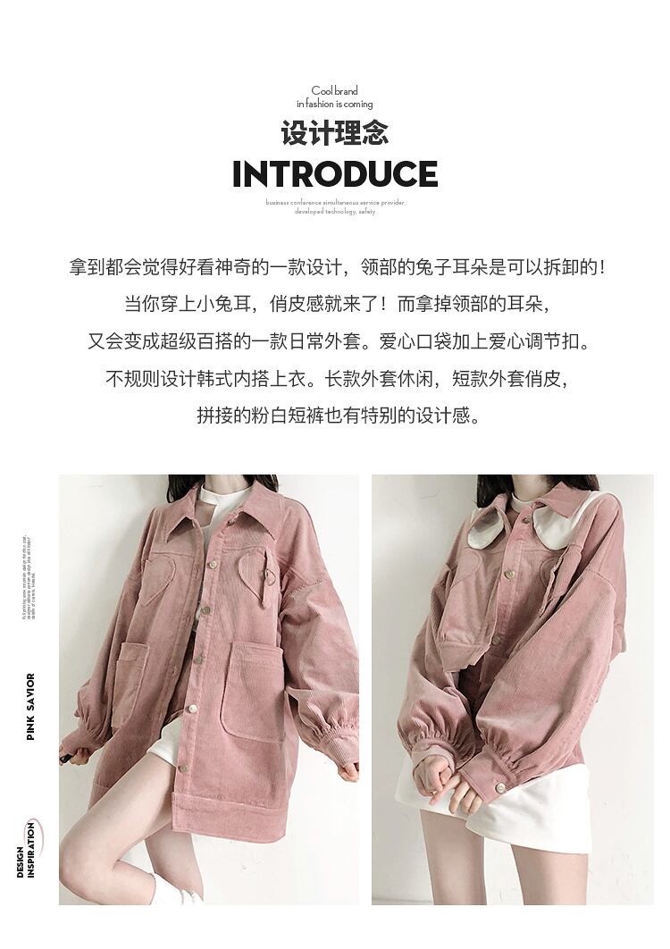 pinksavior【ピーチフレーバーソーダ】うさぎ耳白襟2way早春コーデュロイラブジャケット ピンク スプリング 春物 PSTB89091924761
