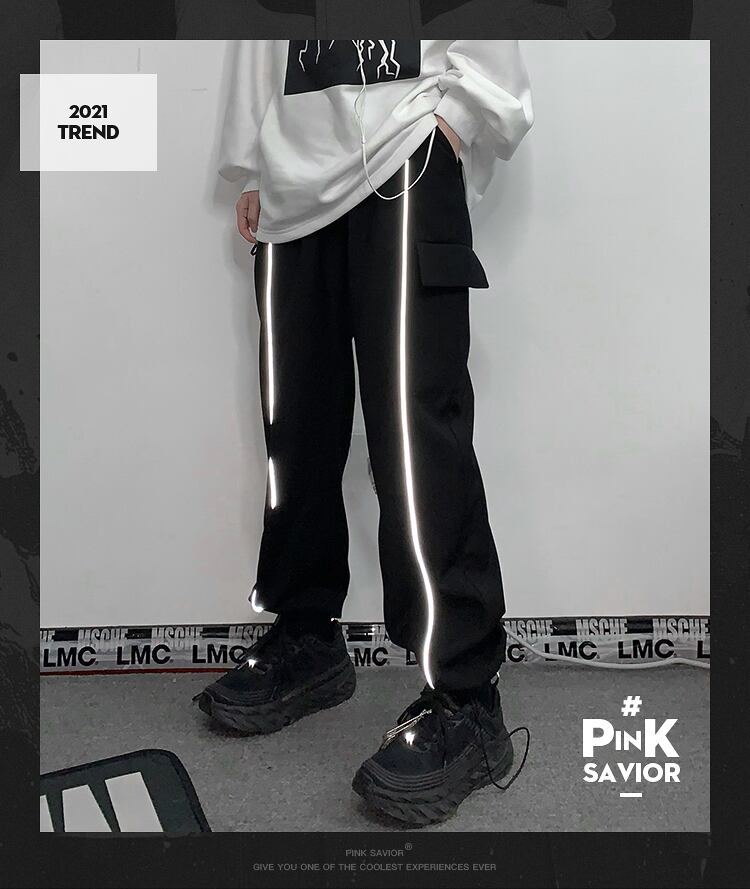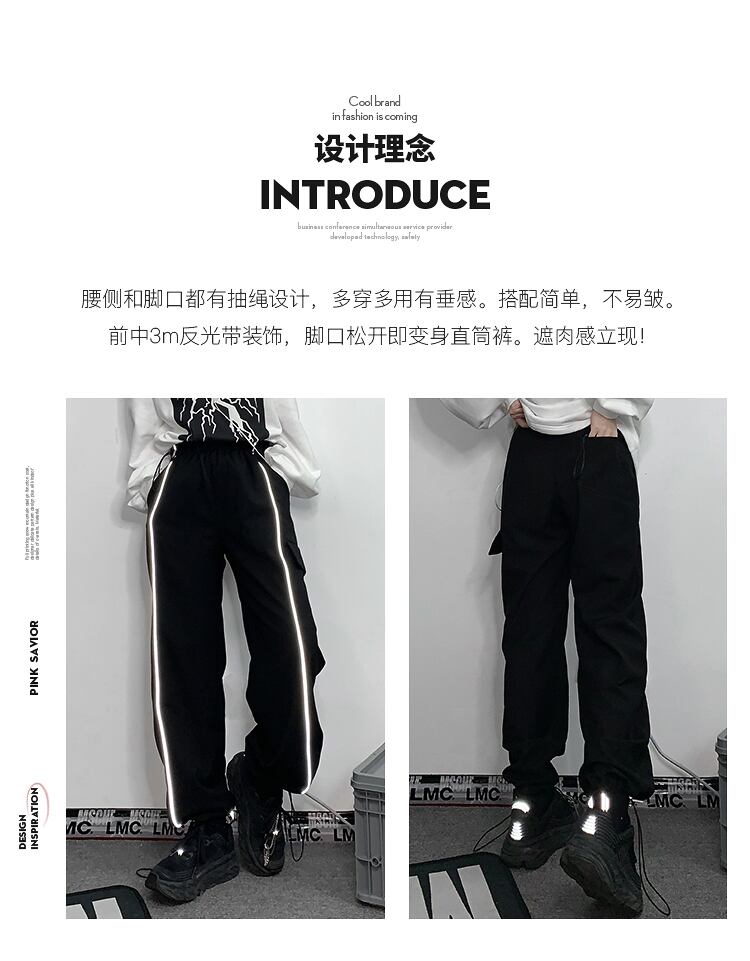 pinksavior伸縮性ウエスト反射デザインスプリングピュアスムースノンアイアンカジュアルパンツ エラスティック 春物 PSTB80403180623
