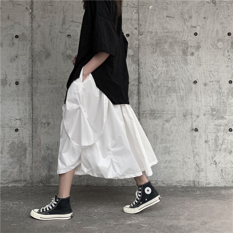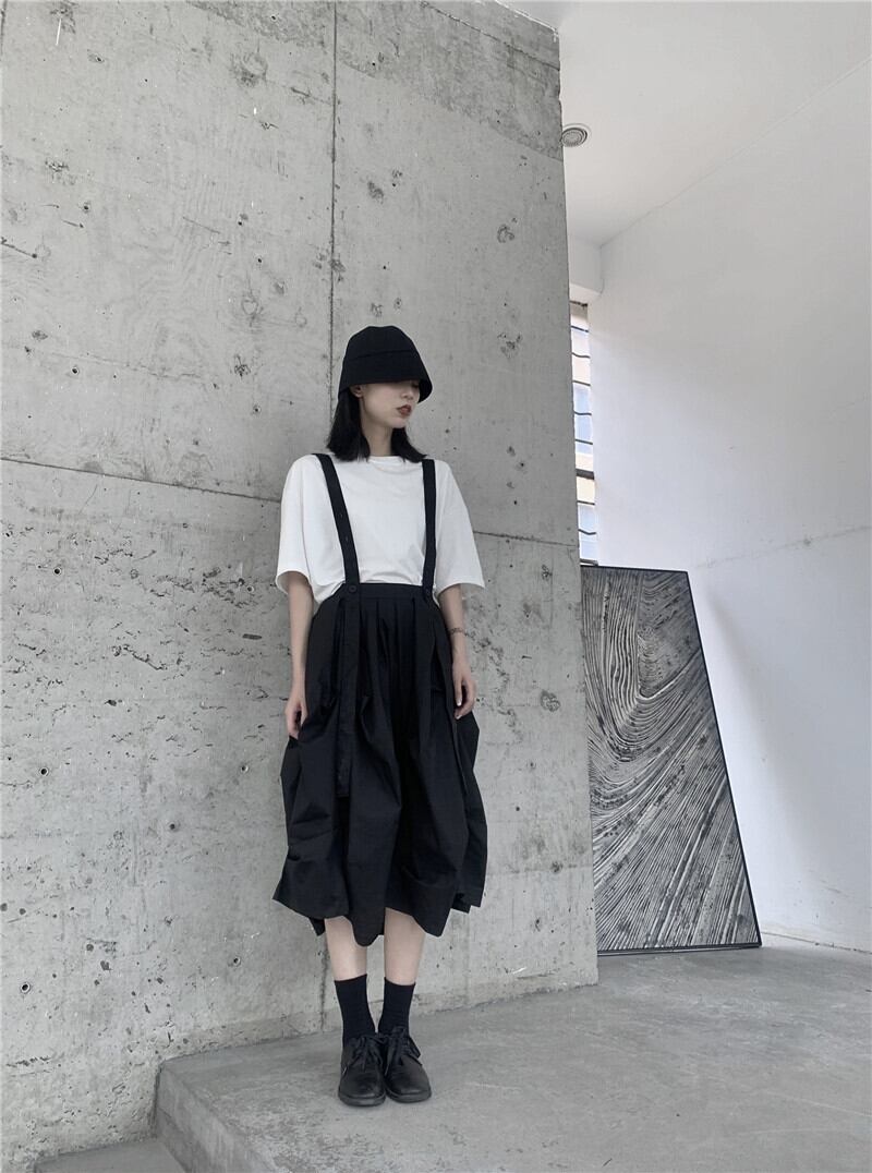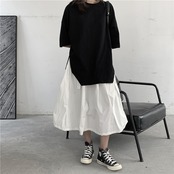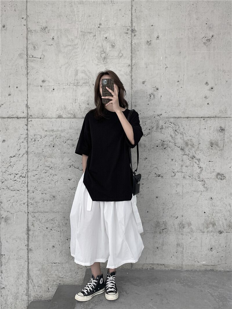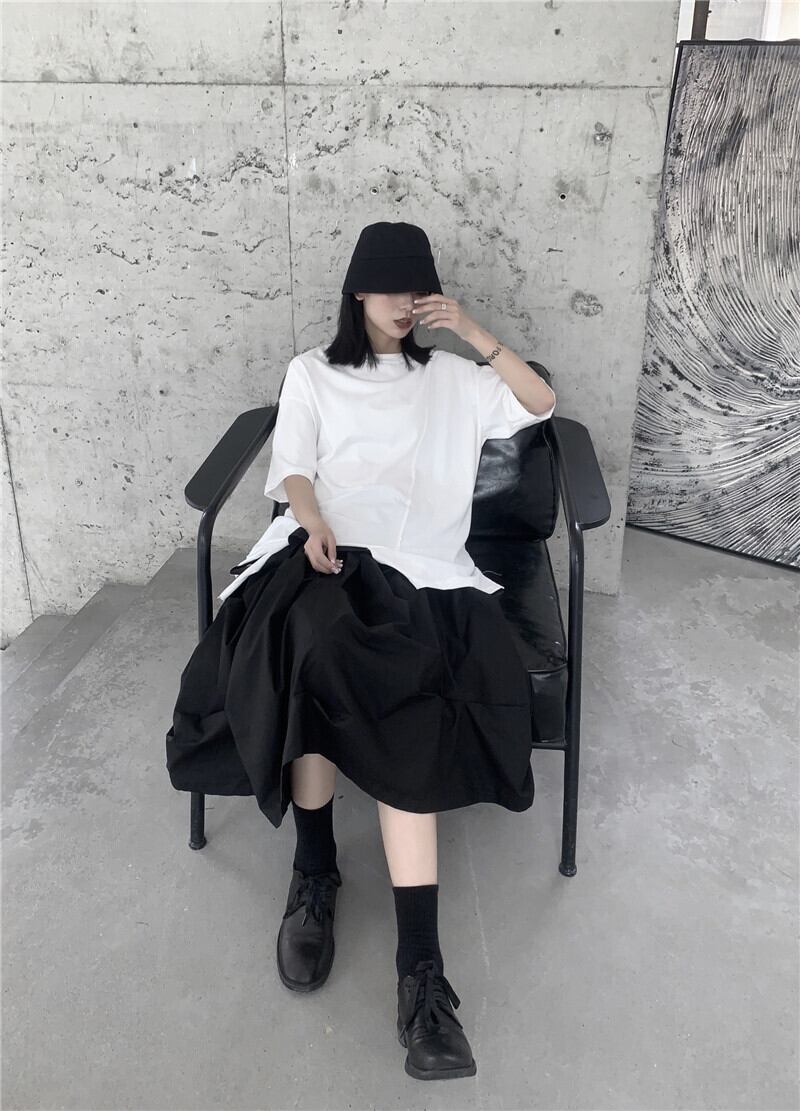BLACK ANDWHITEダークブラックスカートプリーツデザインルーズSラインコットンコールドウィンド ホワイト BWTB37458680583