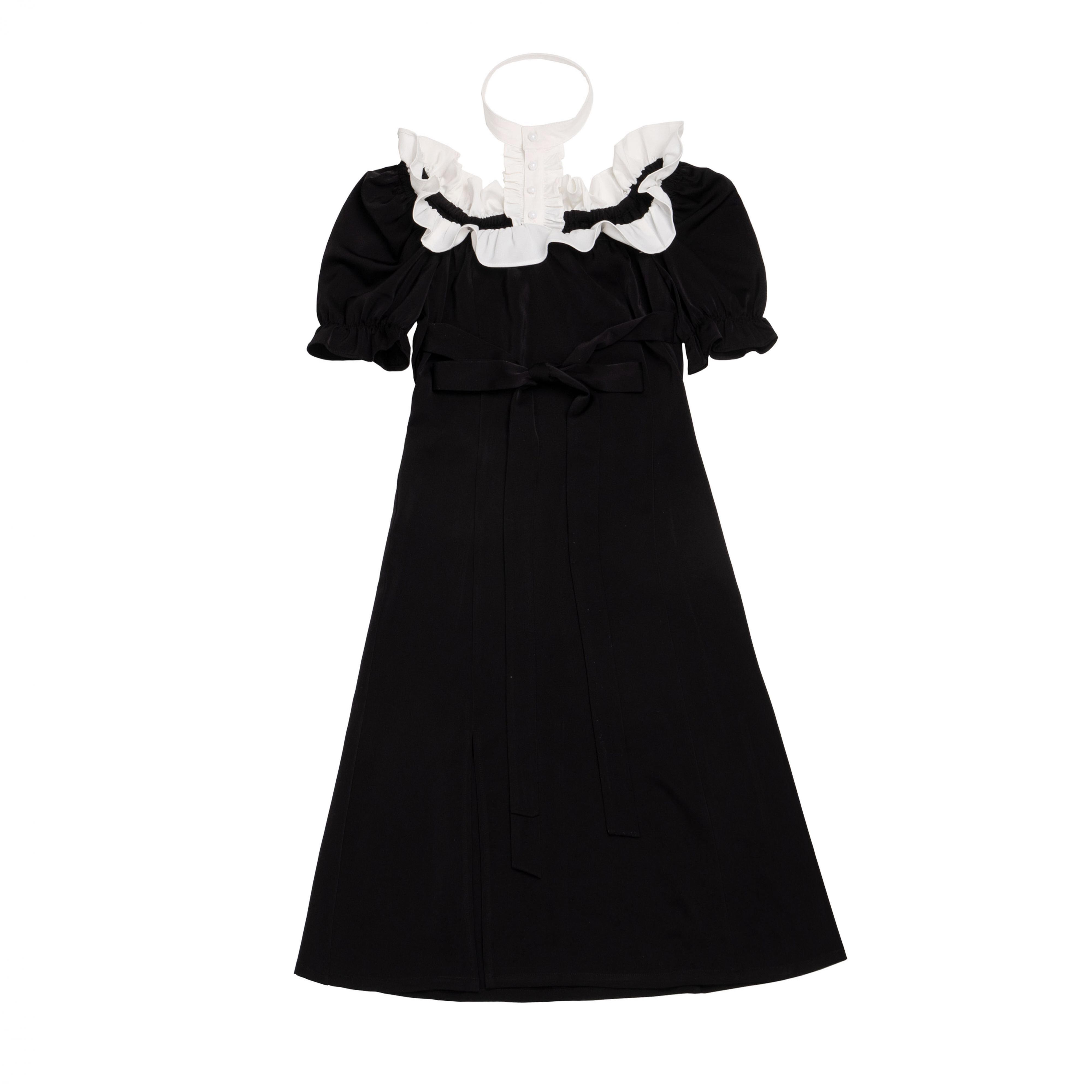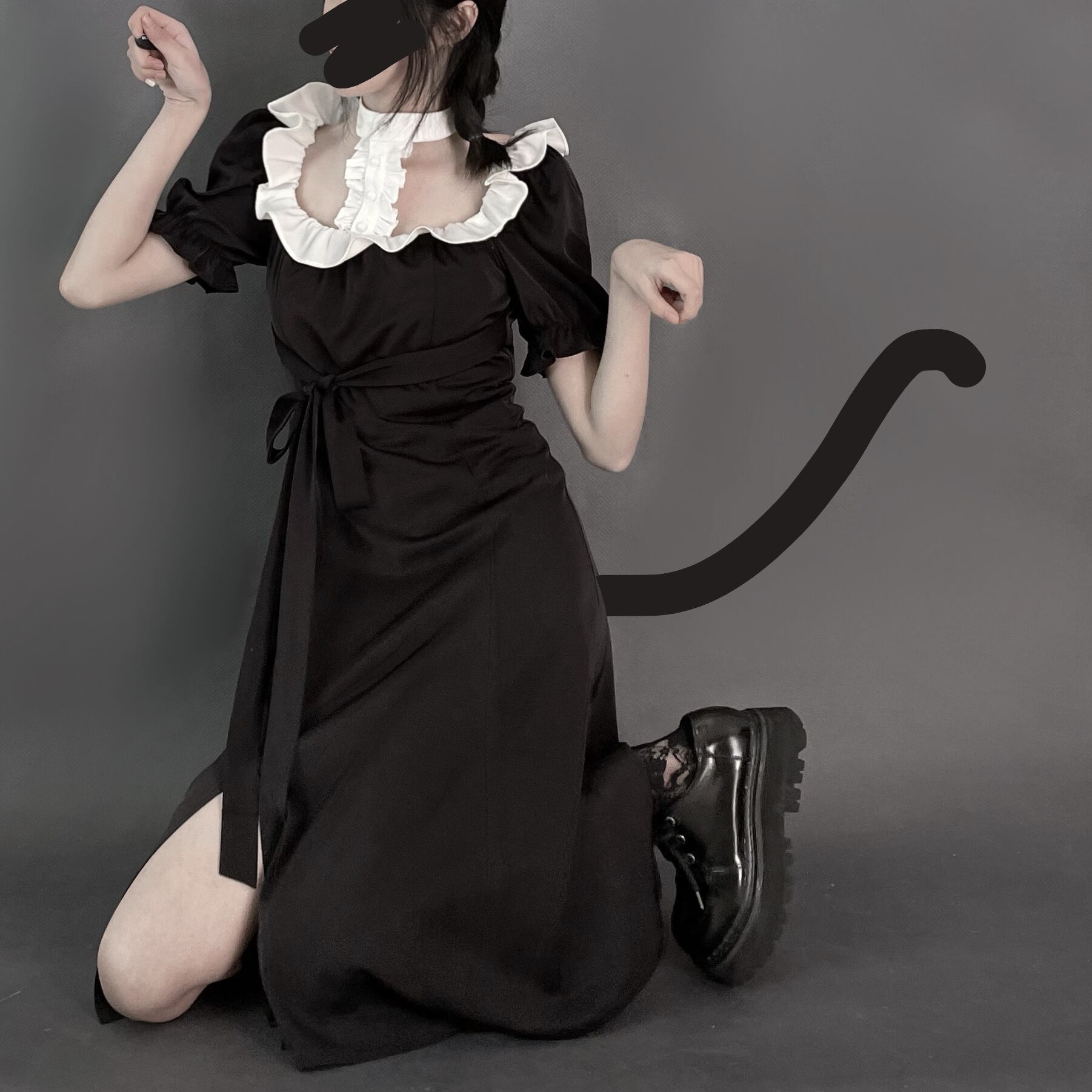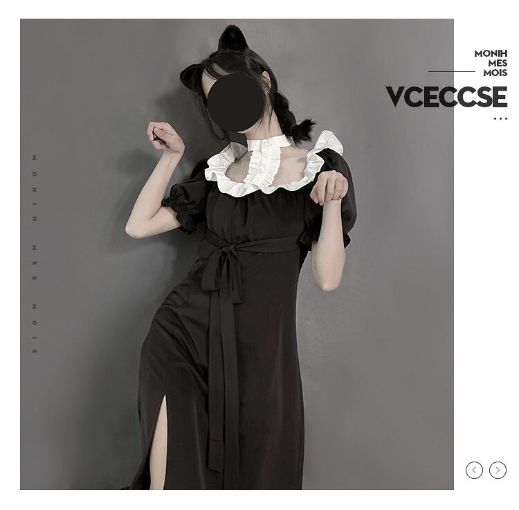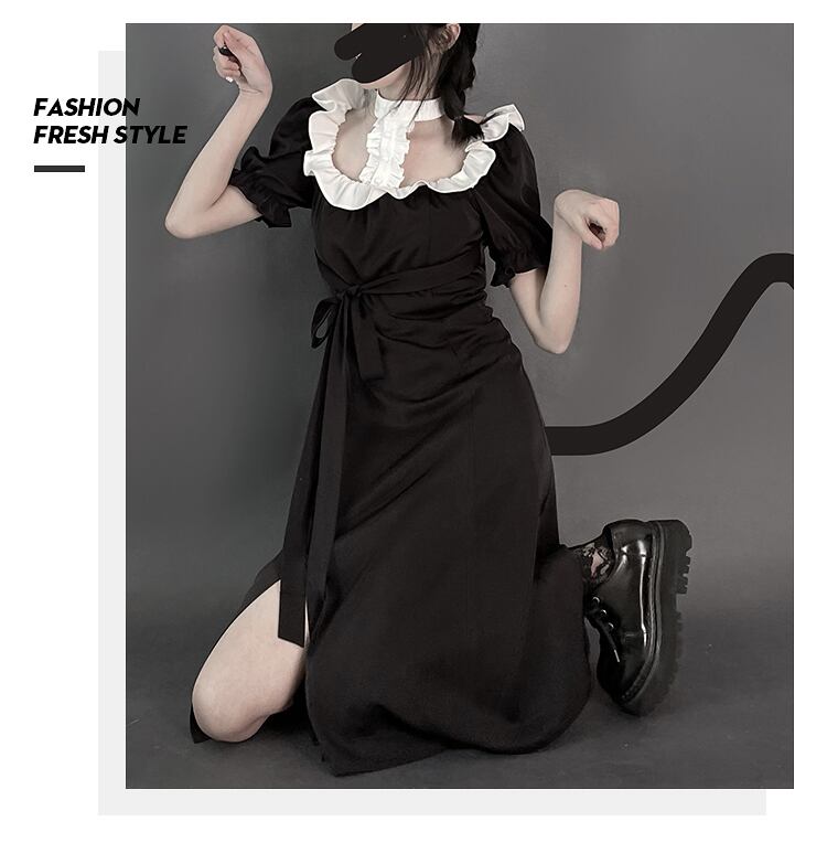 pinksavior[怠惰な猫]白いレースが黒いレースの腰と片方の肩のセクシーなドレスに当たる ホワイト ブラック レースアップ PSTB10064530370