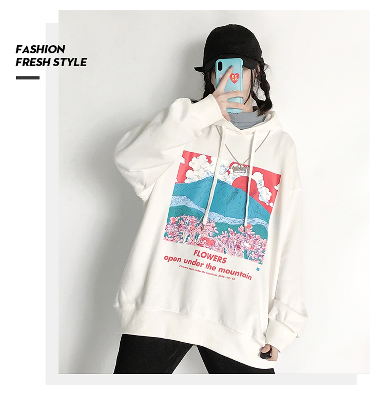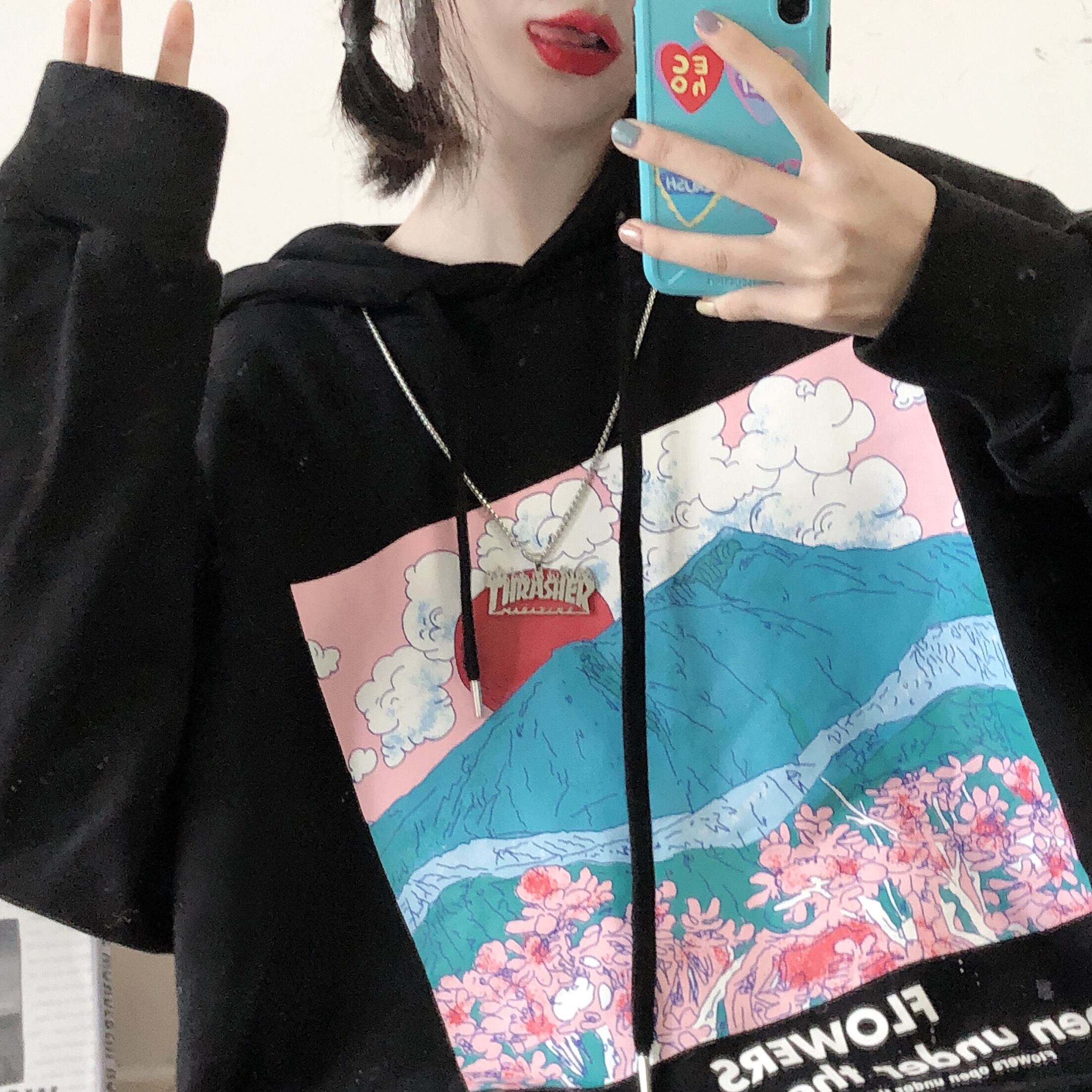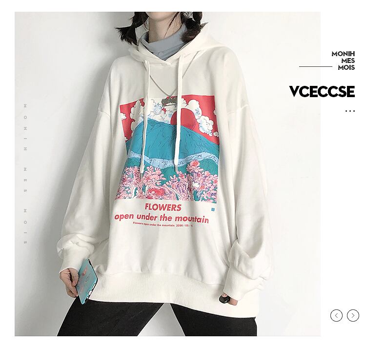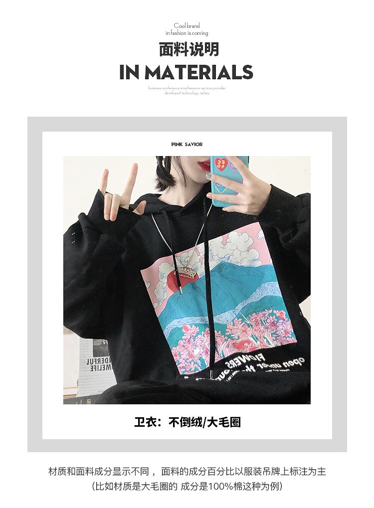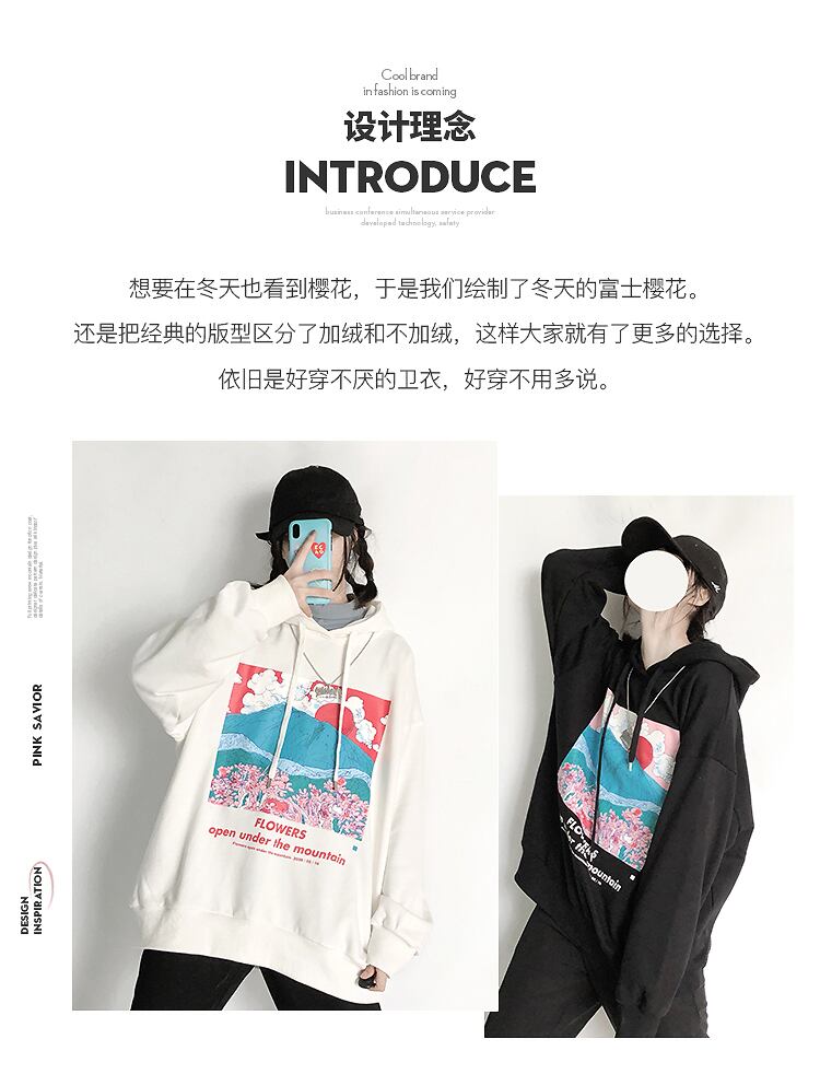 pinksavior富士桜プラスベルベット/ベルベットなし秋冬フード付き薄いワイルドセーター オータム 秋物 ウィンター 冬物 PSTB49689963406
