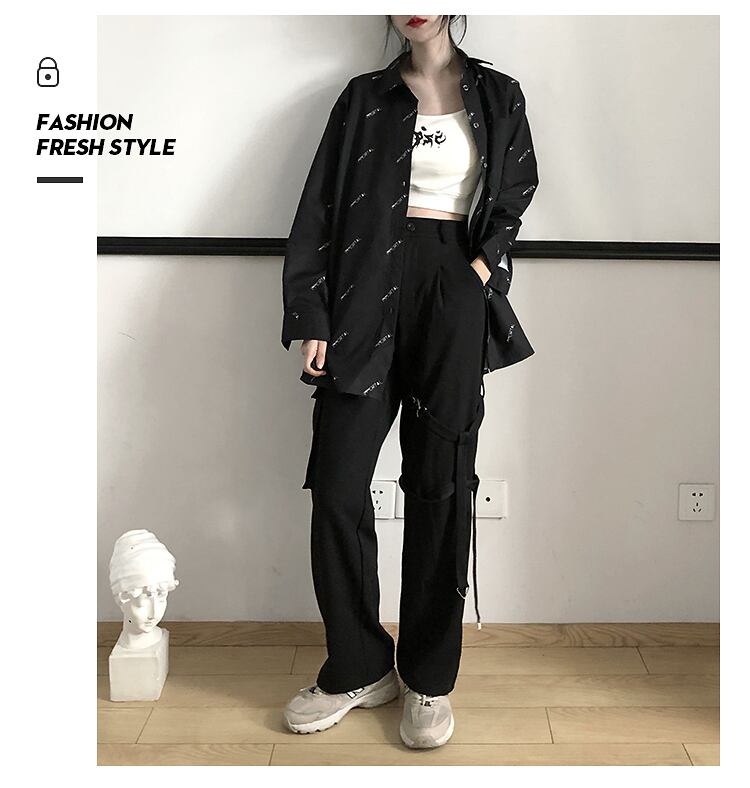 pinksaviorぶら下げサイドデコレーションブラックドレープは薄くて用途の広いロングレッグカジュアルパンツ PSTB20014894276