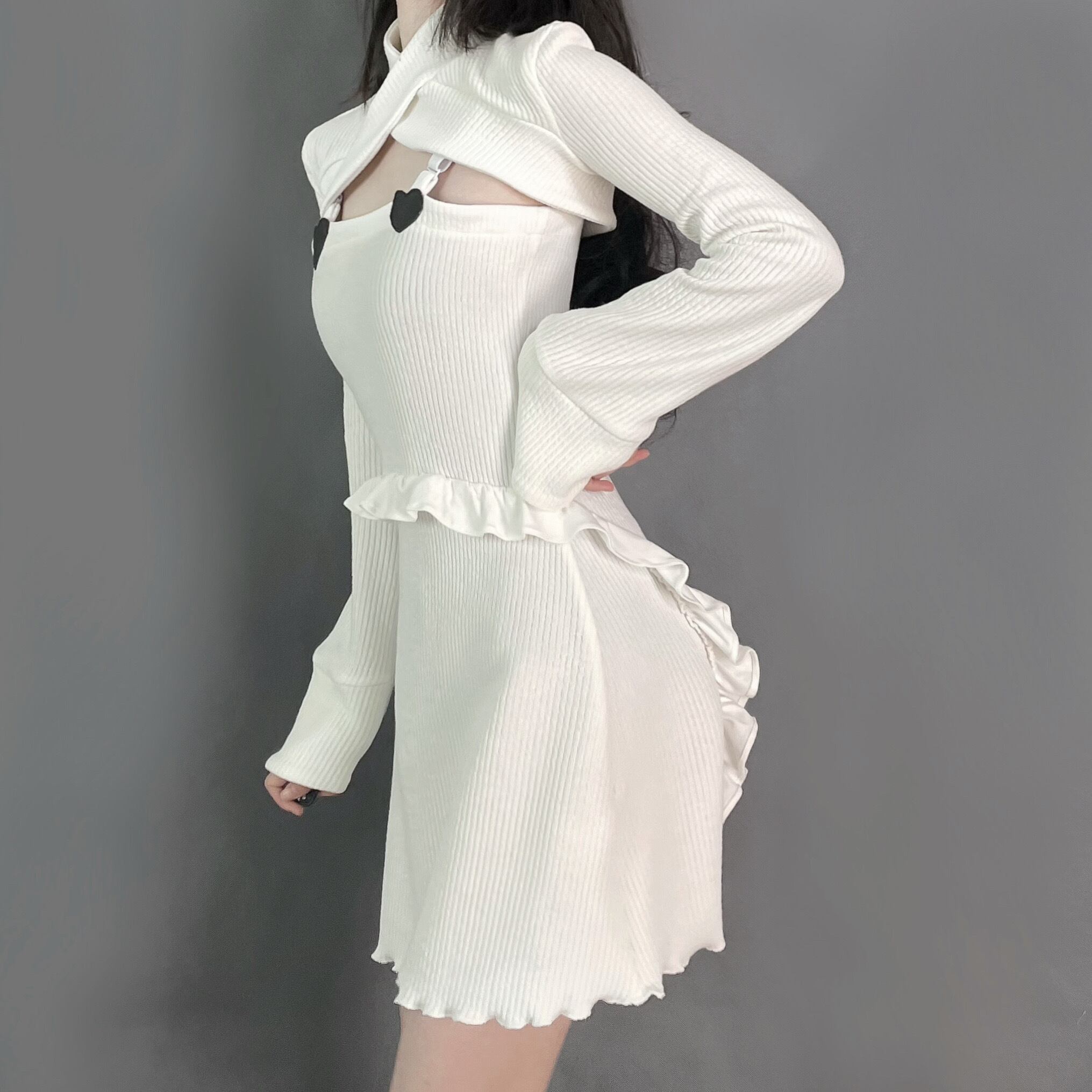 色:ホワイトレースアップトップ(レースブラック),ブラックレースアップトップ(レースホワイト),ブラックロングサスペンダースカート,黒のショートサスペンダースカート,ホワイトのショートサスペンダースカート,白いホオジロトップ