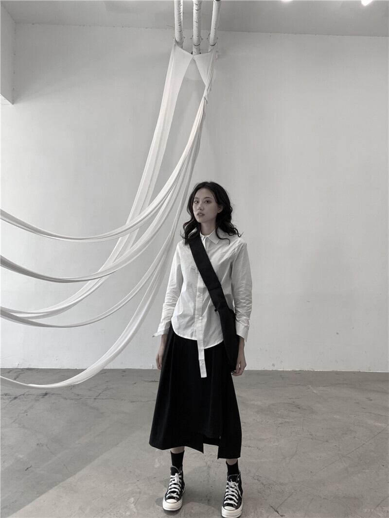 BLACK ANDWHITEダークブラックスカート女性イレギュラーデザインeseニッチミドル丈スカート春新作スタイル ホワイト スプリング 春物 BWTB59054430126