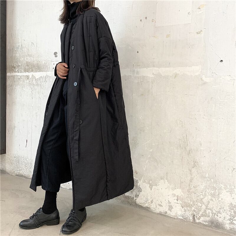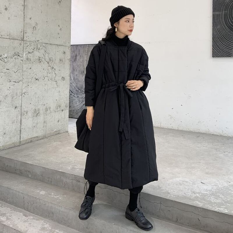 黒と白のダークウィンドパッド入りジャケット女性の膝の上の長いセクション厚いダウンパッド入りジャケットスリムな冬の新しいスタイル ロング ホワイト ブラック ウィンター 冬物 BWTB41512862198