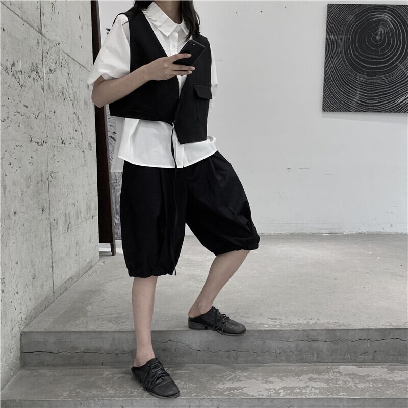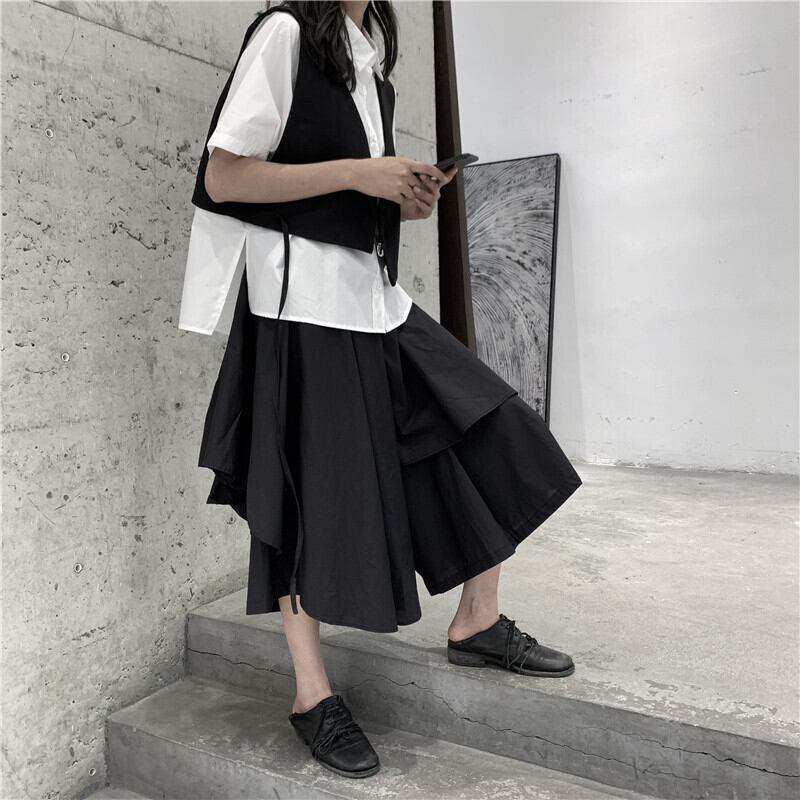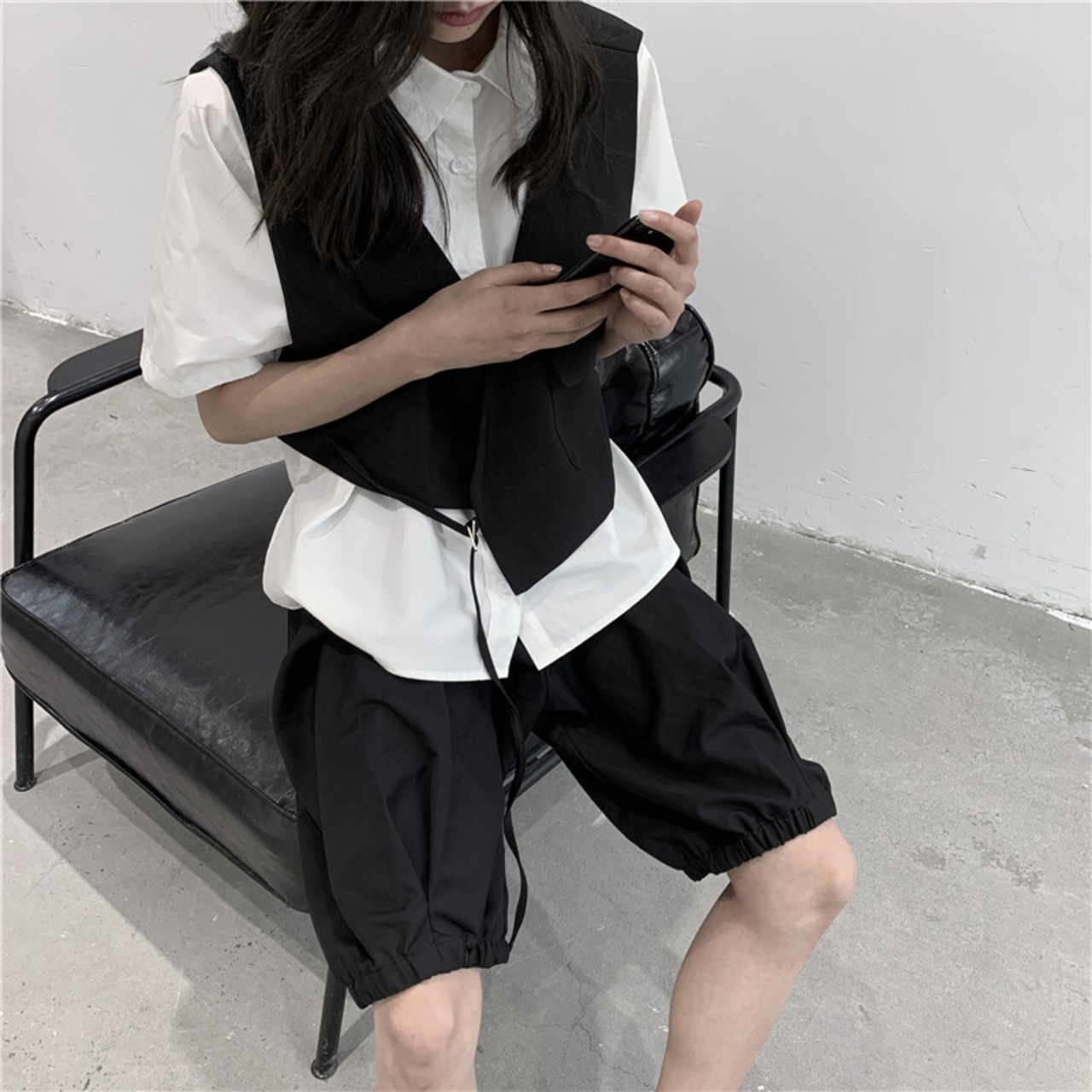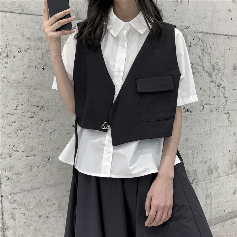 黒と白のダークブラックのベスト非対称デザイン春と夏の新しいニッチ ホワイト スプリング 春物 サマー 夏物 BWTB22044382473