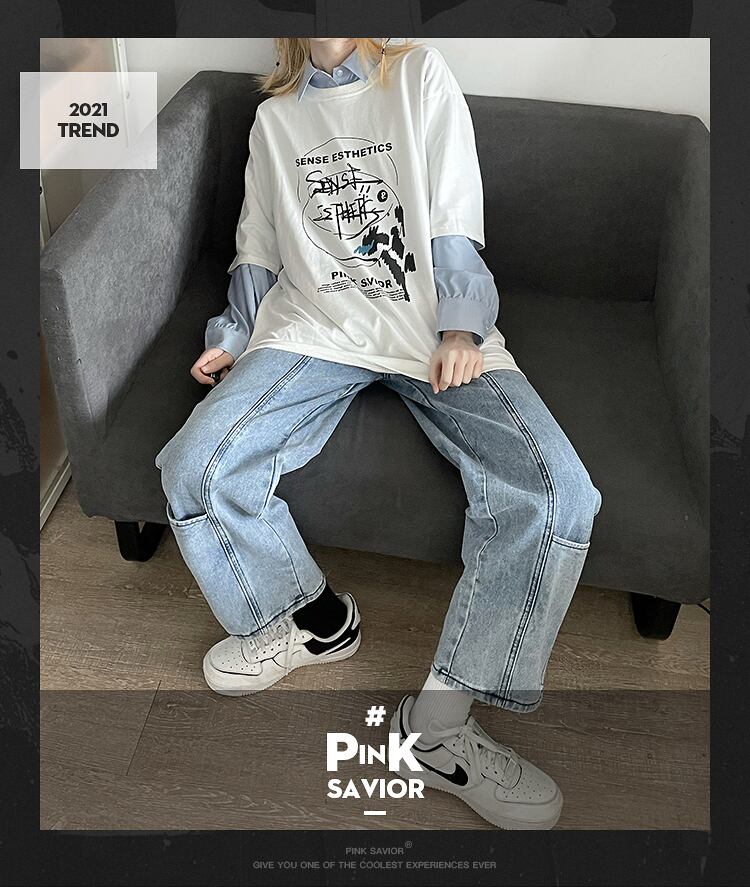pinksaviorラインコラージュスモールカジュアルライトブルー春夏レギュラージーンズ スプリング 春物 サマー 夏物 PSTB21704409613