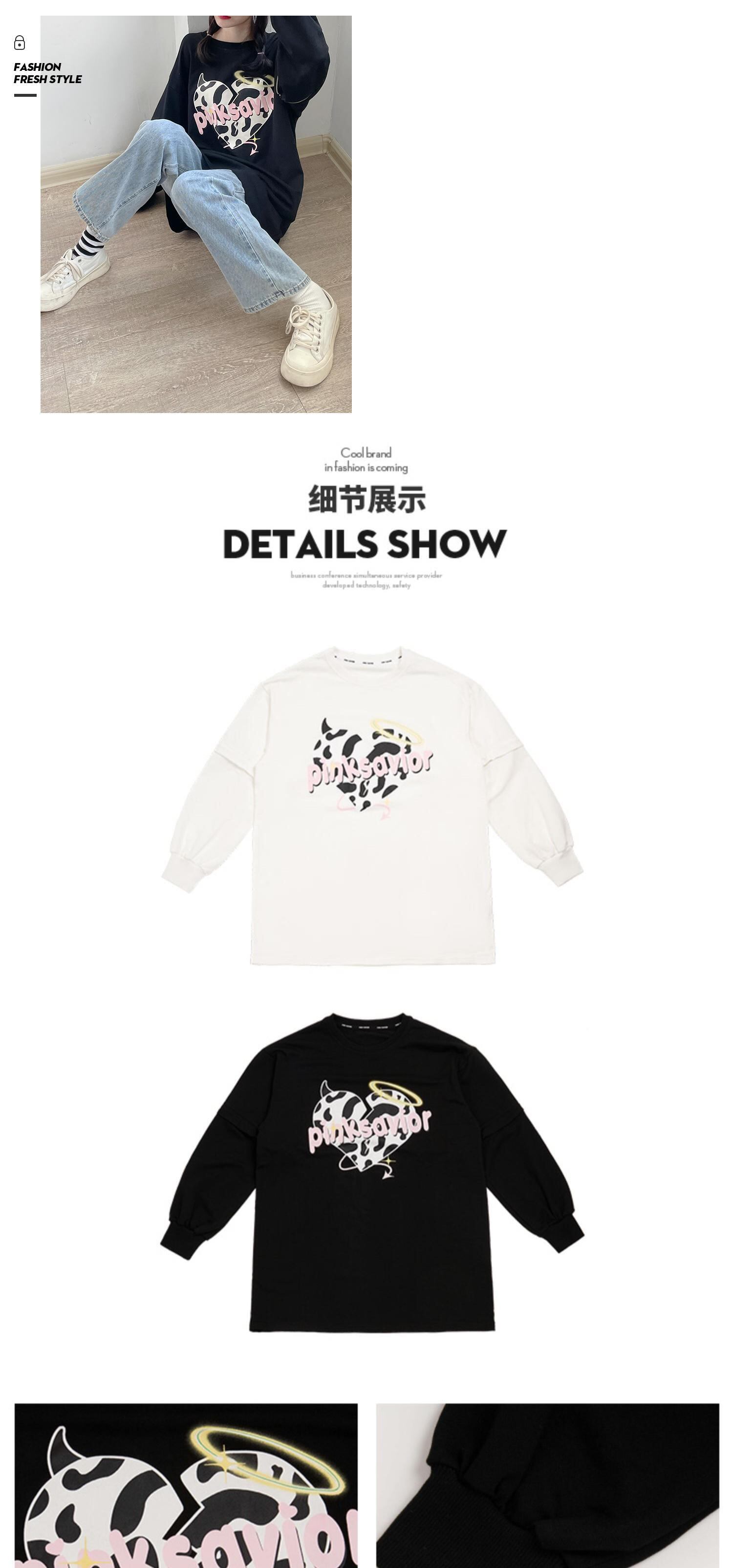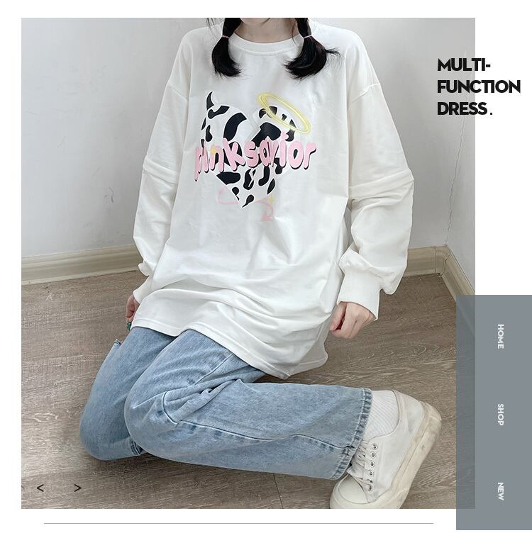 pinksavior(複数の着用方法のロックを解除)取り外し可能な袖の牛のプリントデザインのボーイサイズのセータードレス ピンク PSTB51084007204