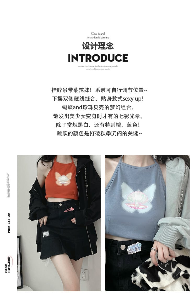 ホルターネックのpinksaviorコロケーションオデルの弾力性のある肌にやさしい4色のテクスチャスリング エラスティック 伸縮 PSTB54407214205