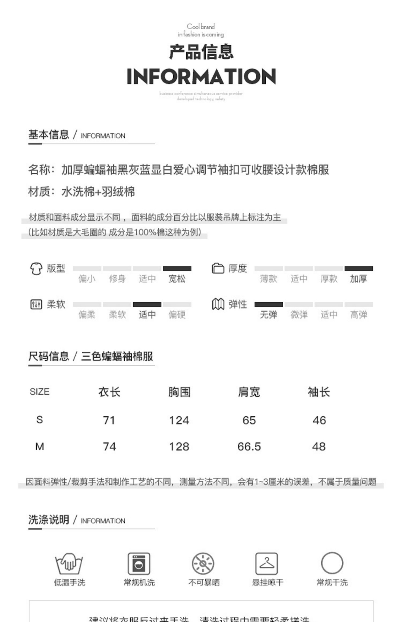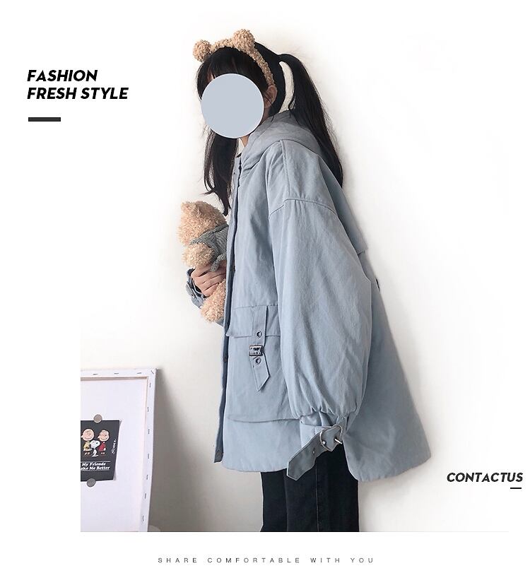 pinksaviorの厚手のバットスリーブブラックグレーブルーホワイトの愛の調整カフスボタンはウエストデザインのコットンジャケットにすることができます PSTB50714491505