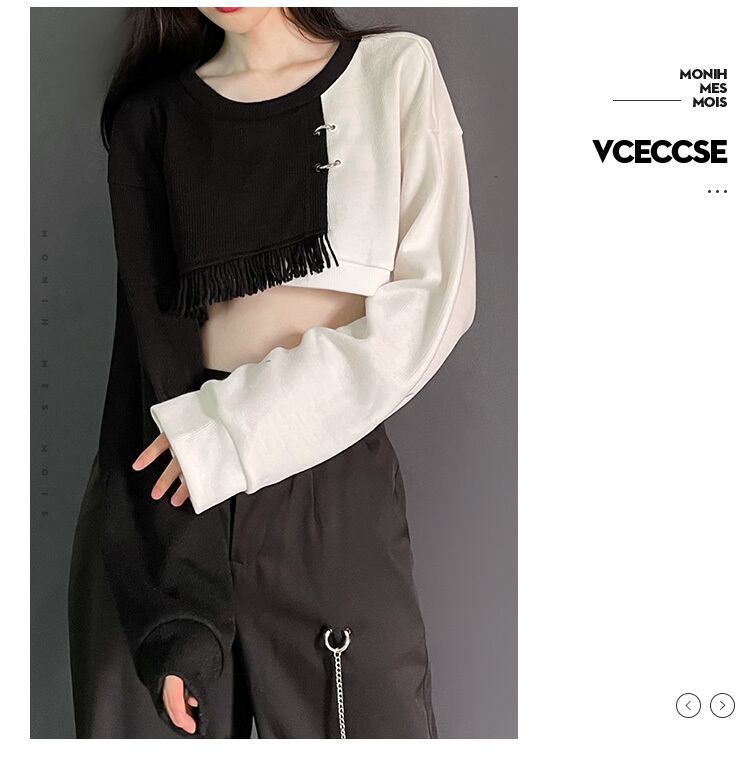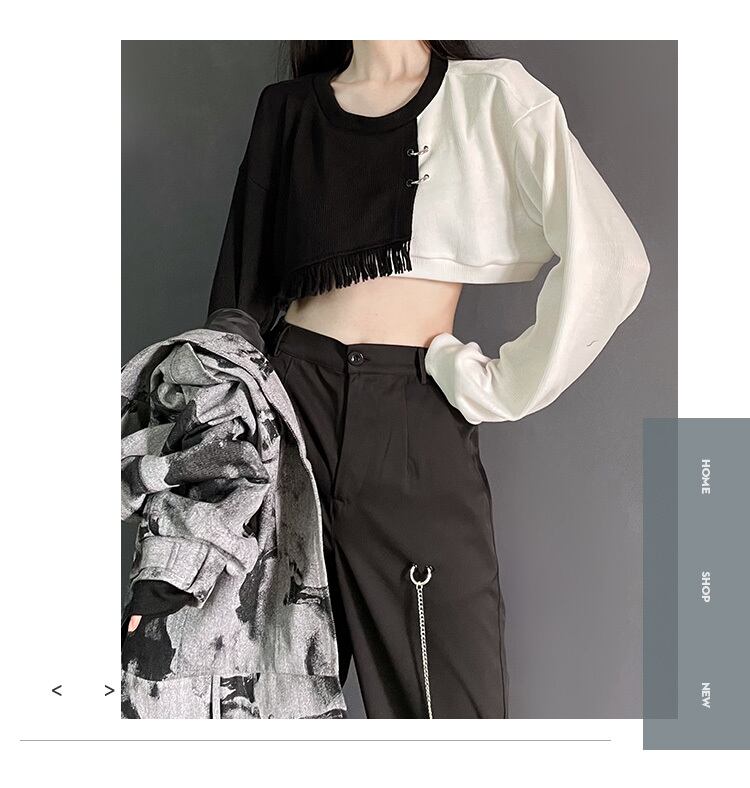 pinksavior黒と白の非対称カラーデザイン秋冬ワイルドテルポートフレーバー長袖セーター ロング ホワイト ブラック オータム 秋物 ウィンター 冬物 PSTB36732165844